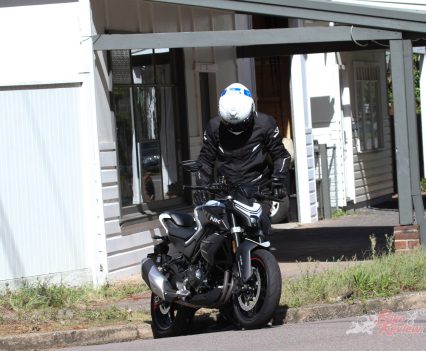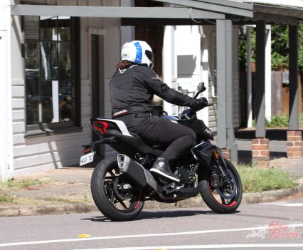 Around town, you’ll have no dramas lane filtering, or getting out in front at the lights quickly and efficiently. The factory Adreno tyres are fine for beginners – they get a bit squirrely in the wet, but their overall performance is decent. I’d definitely recommend chucking on a set of more premium rubber in the first 10,000km.