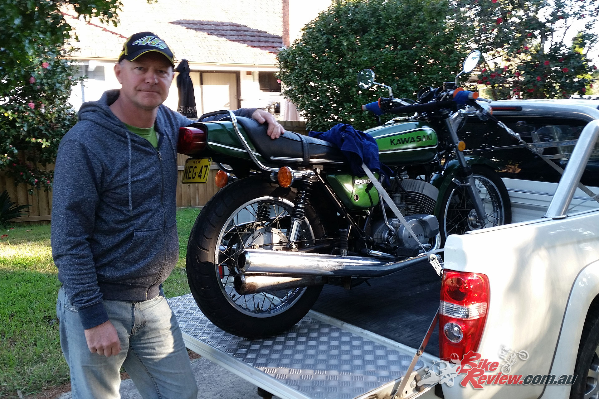 I’m used to riding the latest and greatest bikes all the time, so my idea was to buy something for myself that I was less likely to lose my licence on. I had it in the back of my mind that one day I would buy another Kawasaki triple, I’d previously owned a KH400 way back in 1983 in the UK when I was 16, which I’d bought from a workmate at the smash repair place where I was working.