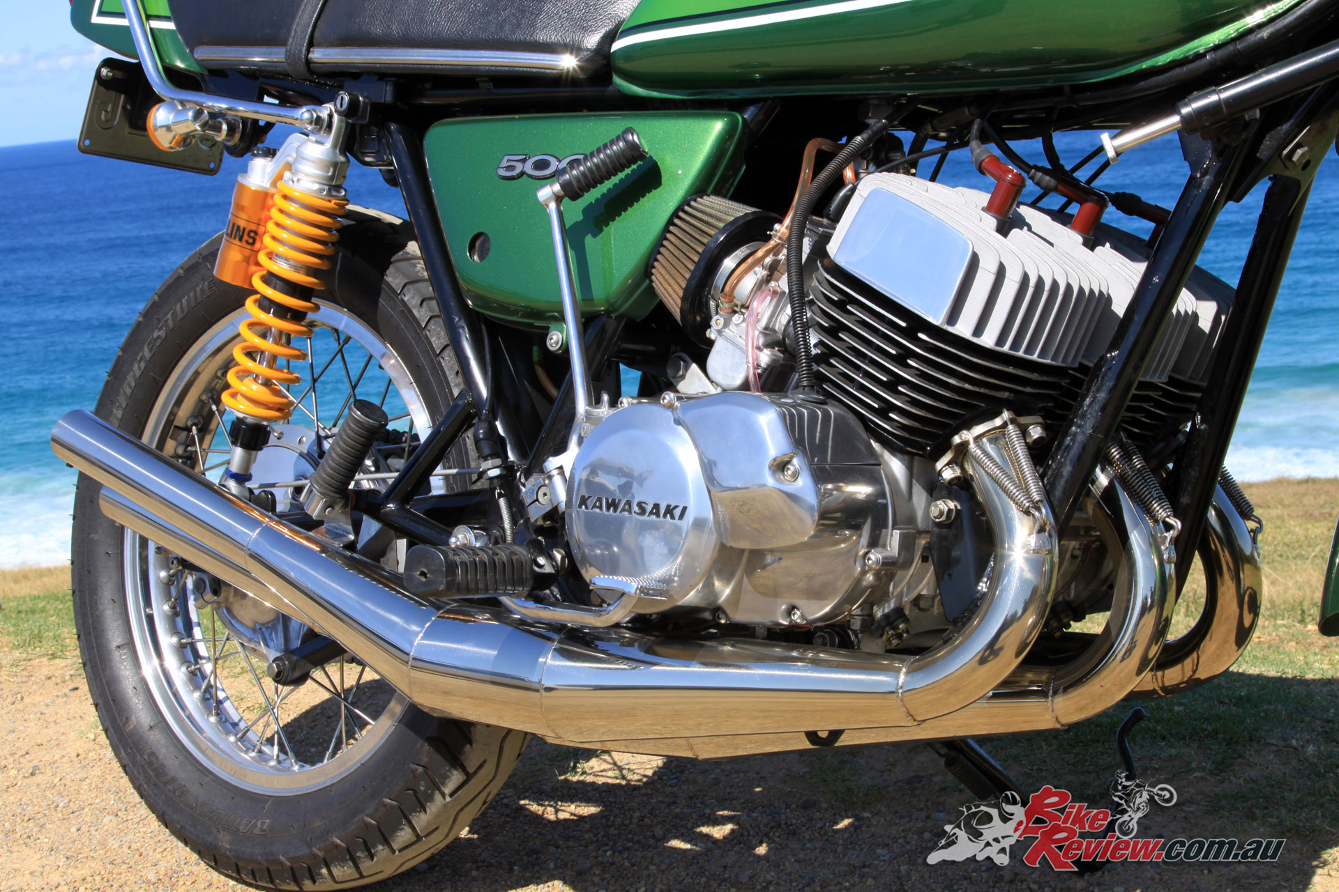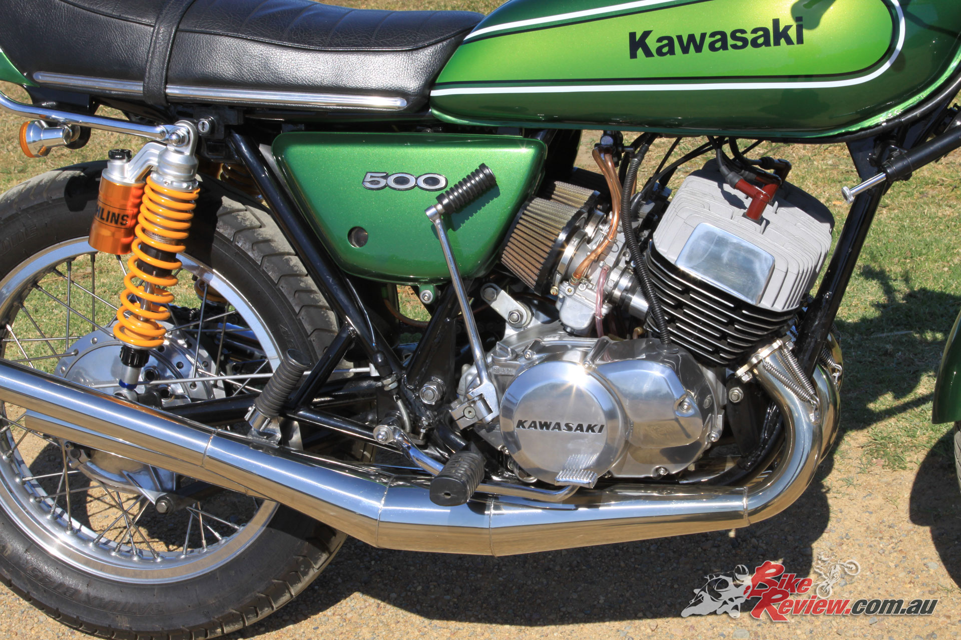 After a bit of research, I decided to increase the rear shock length 60mm by installing a set of fully adjustable rear shocks. The moment I rode the bike with the new shocks I knew I’d improved the bike immeasurably, the steering is now quicker and the bike turns and flicks better from side to side, I’m not saying that my ’74 H1 handles as good as a modern bike, but it’s now much more fun to ride and makes me want to take it out even more.