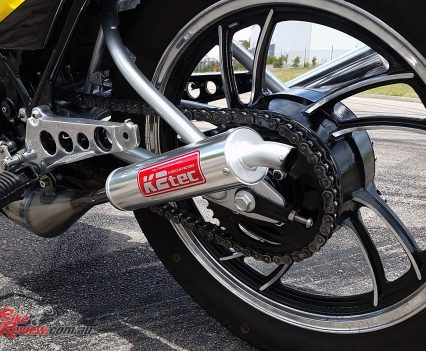 The most expensive thing I needed was a set of expansion chambers, when I say needed I really mean wanted, as I already had two sets of stock pipes. I did a bit of research and settled on a set of K2 Tech’s from Japan, not only do they sound good they are less than half the weight of the originals. I also ordered a Kenny Roberts sticker set from the UK, along with a new headlight.