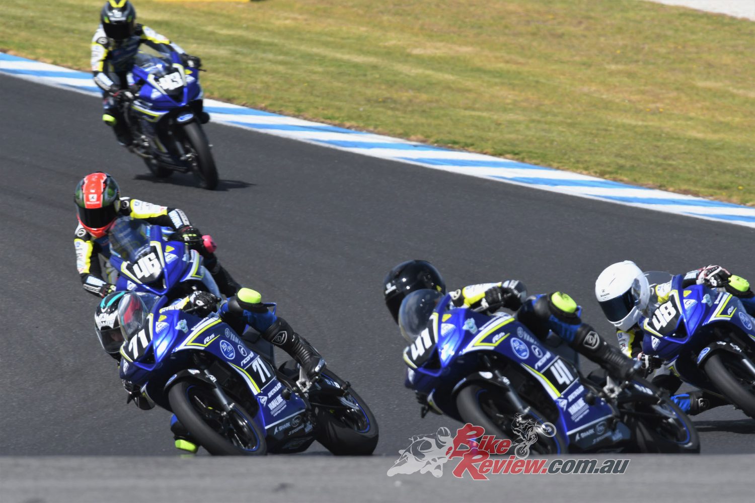 The OJC control bike is the Yamaha R15. You can see our R15 review here. The bike had a top speed of 151km/h on the Phillip Island Gardner Straight. The best thing about the R15 V3 is it is a better step to the R3 cup because the tyres are fatter than the earlier version R15 and the geometry is the same as the R3. The R15 V3 has the same suspension as an older R3 and is faster now too!
