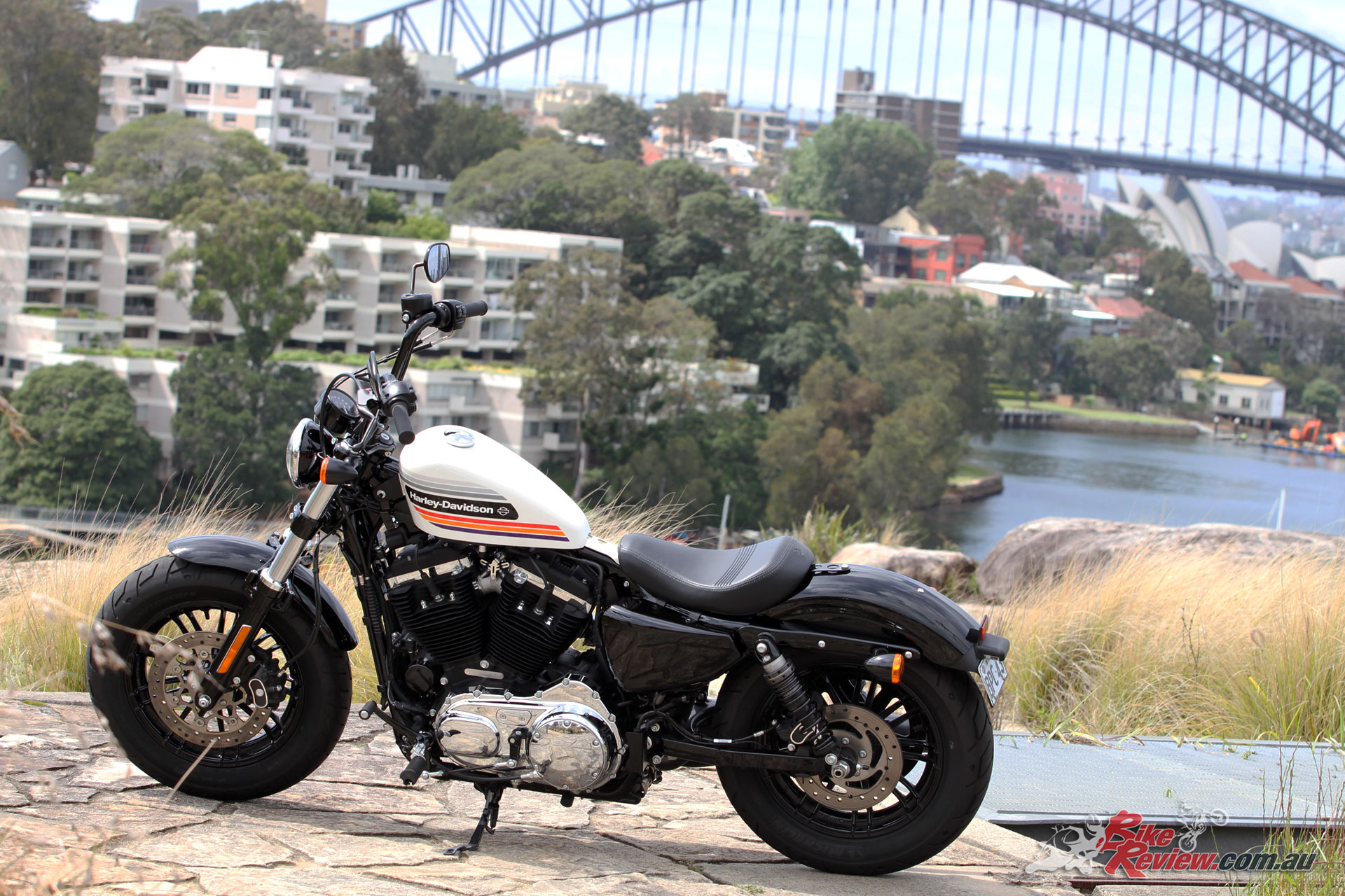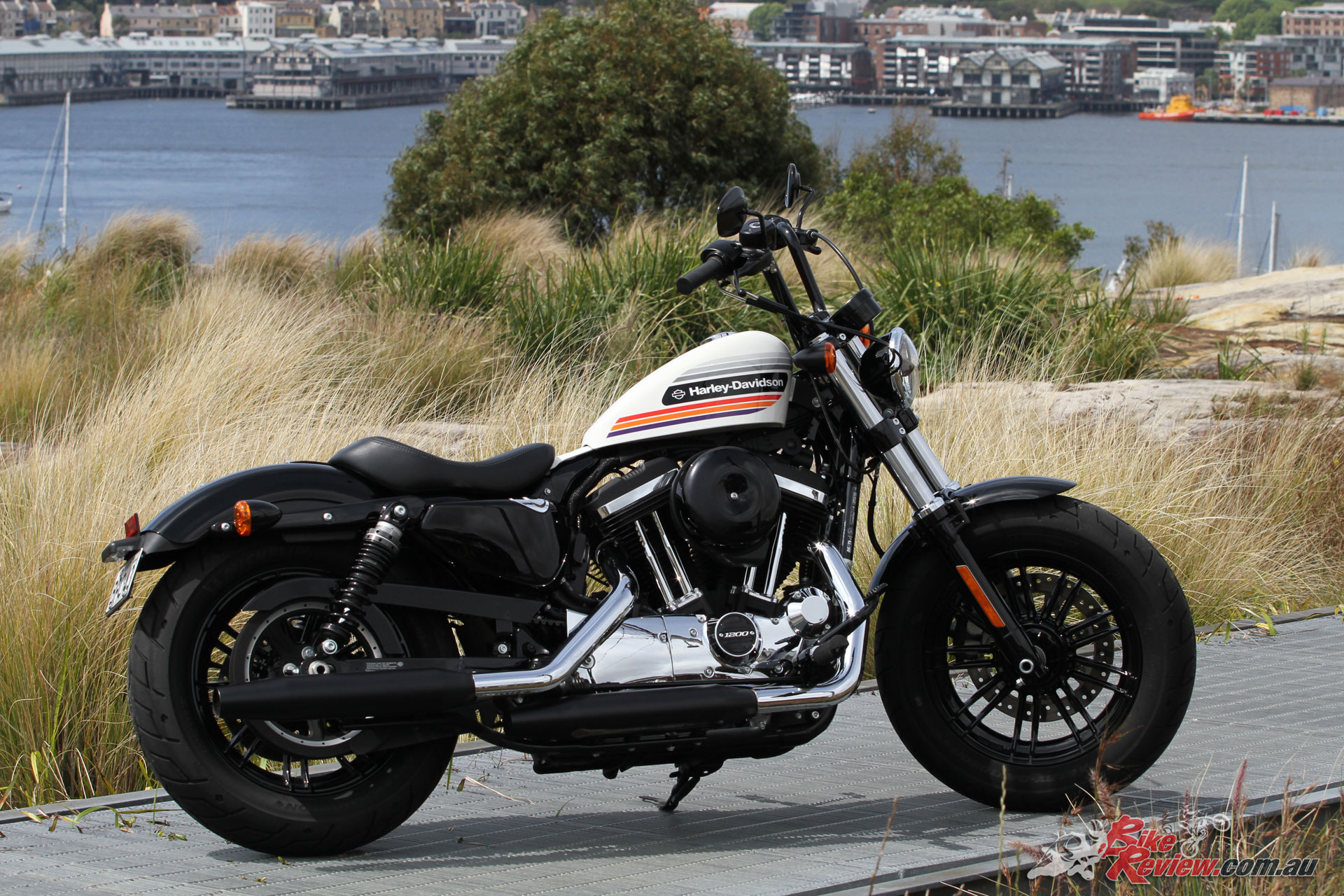 There is plenty of customisation available for the Forty-Eight and the entire Sporty range. They are a fantastic urban bike, which is what they were designed for, but that 1200 Evo motor really is fantastic out of town as well, shame about the range, as it is a viable weekend touring option not just a fun city blaster. I’d opt for louder pipes, find a bigger tank and increase the rear ride height and travel with aftermarket shocks. This would give better cornering clearance and a nicer ride over bumps.