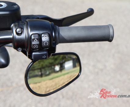 The controls on both bikes are the same and standard simple H-D jobs. There is the dash scroll button on the left, a fob instead of a key as usual, indicators on left and right switchblocks, auto cancelling on the indicators as well as the usual – horn, high beam, kill/start, hazard.