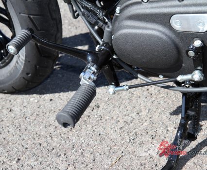 The chassis, like the engine, is virtually identical on the two bikes sans the handlebars on the Special, which are a taller mini ape hanger style, and the seat height, which is 5mm lower than on the standard model. Suspension travel, geometry, wheels, tyres, brakes are all the same, however, the Special is a few kilo’s heavier than the standard for some reason I can’t work out. With the bigger ‘bars, the Special is of course wider and taller. Both bikes are identical in price, $18,995 Ride Away, but with the chrome highlights and details, the Special seems to be the better value on paper.