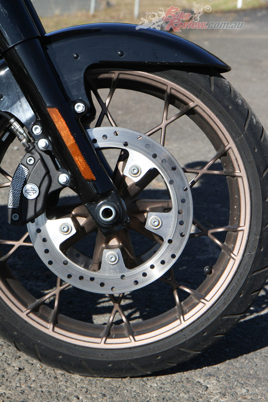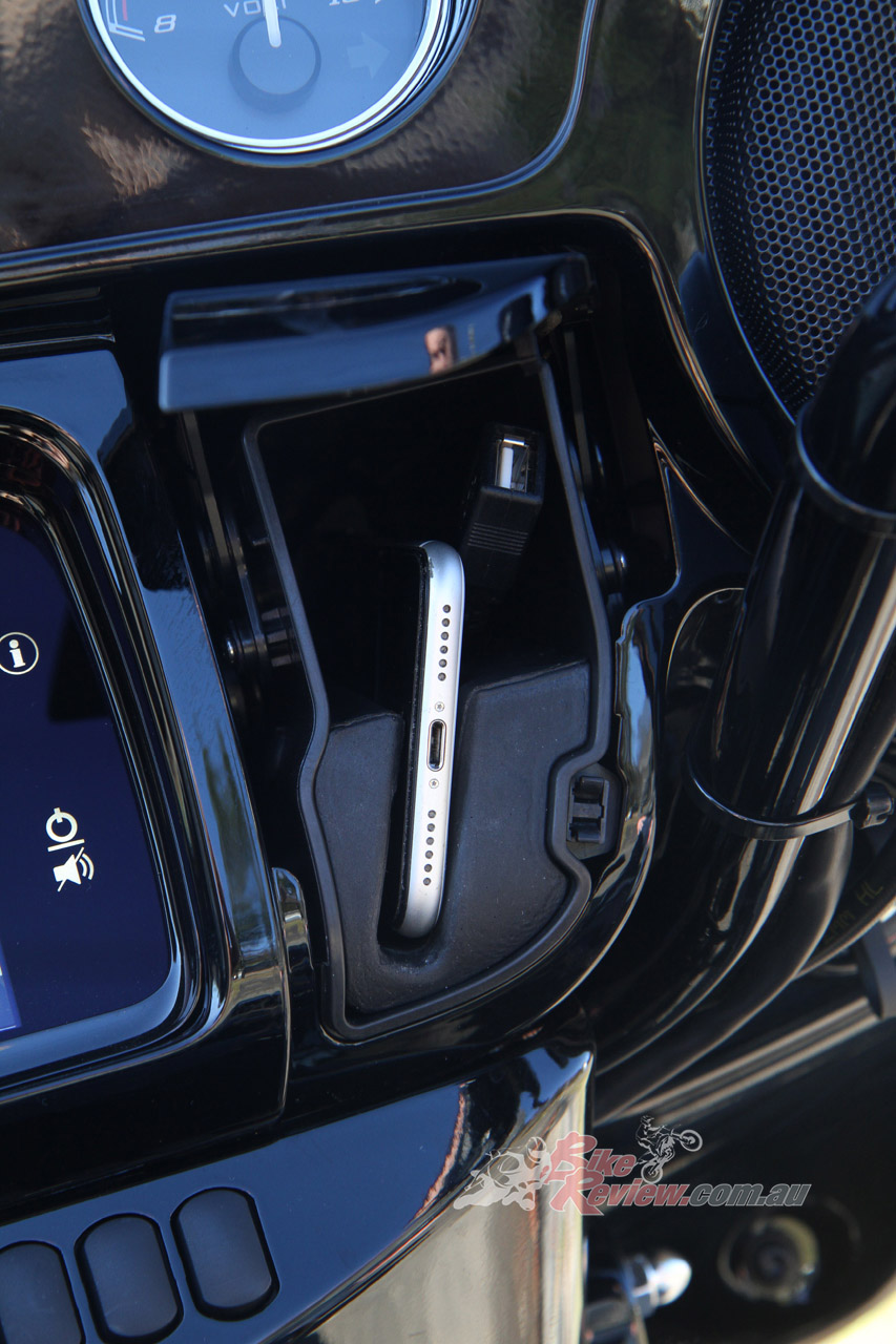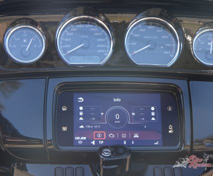 Everything is controlled through Harley-Davidson’s awesome 5.25 full colour TFT screen. Options can be changed through the tactile buttons on the bars, which also controls the cruise control, or the touch-screen itself. Your smartphone can be connected via Bluetooth to display notifications and play music. Other features include a Tyre Pressure Monitoring system (TPMS) and a USB charging port.