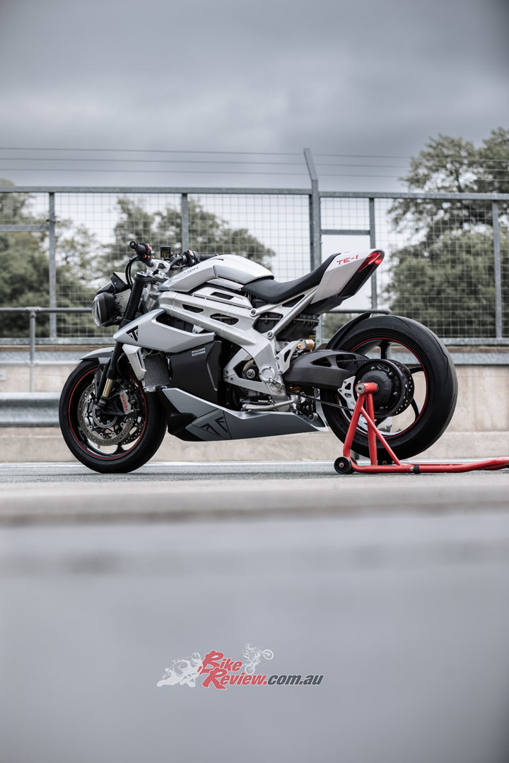 With a throttle action and torque delivery map directly engineered from a Speed Triple 1200 RS, the track testing and dynamic rider assessments on the TE-1 prototype demonstrator deliver a level of handling that matches Triumph’s current triple cylinder sports performance motorcycles.