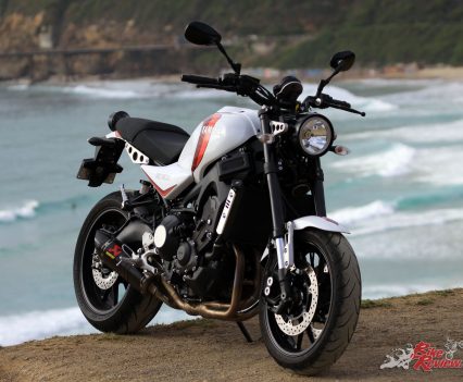 The previously tested ‘RD’ styled XSR900 custom also from Yamaha, fitted with an Akrapovic exhaust and had some real growl