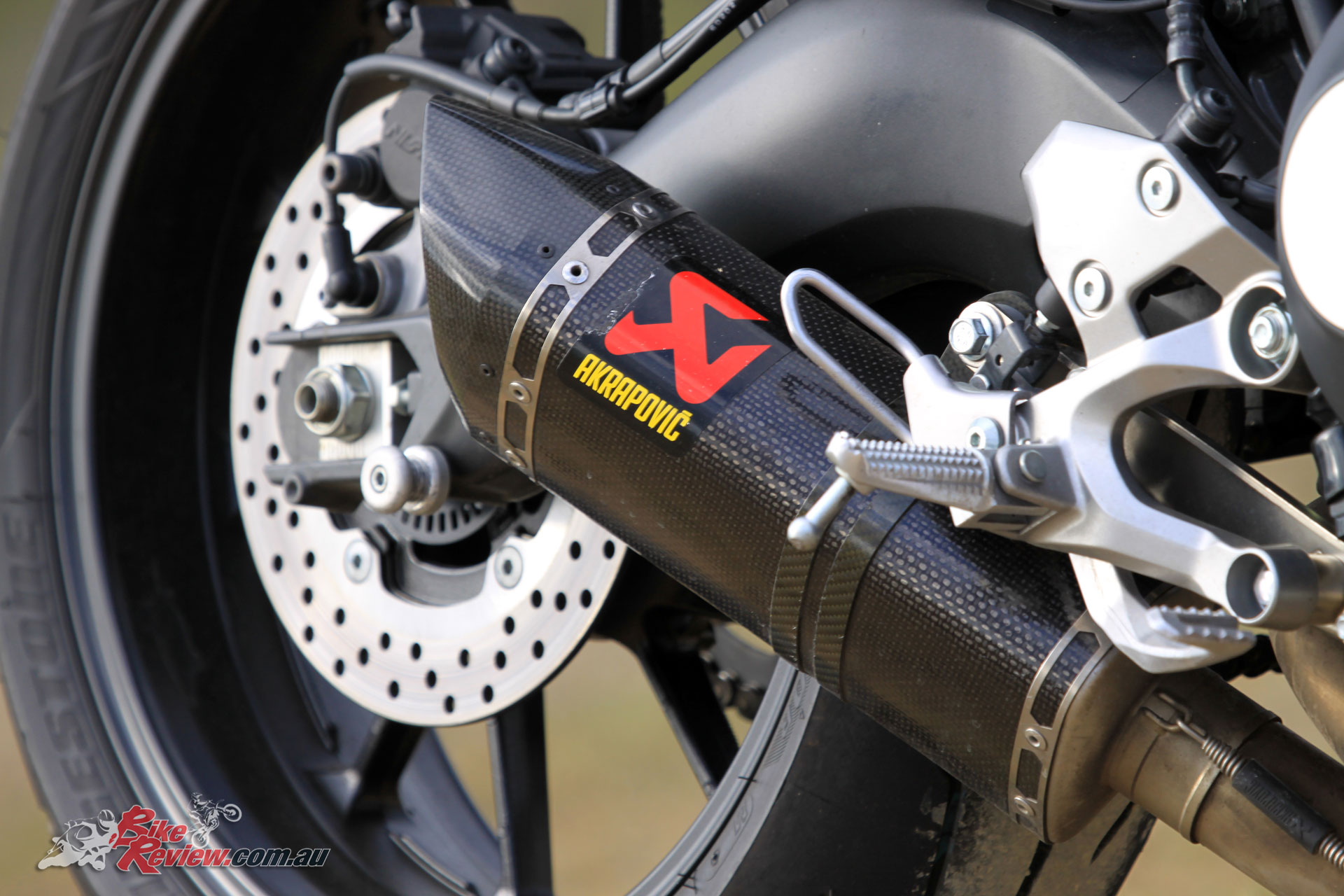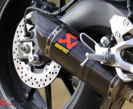 The underbelly exhaust is quiet, but centralised and out of the way, showing off the banana swingarm.