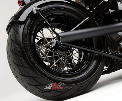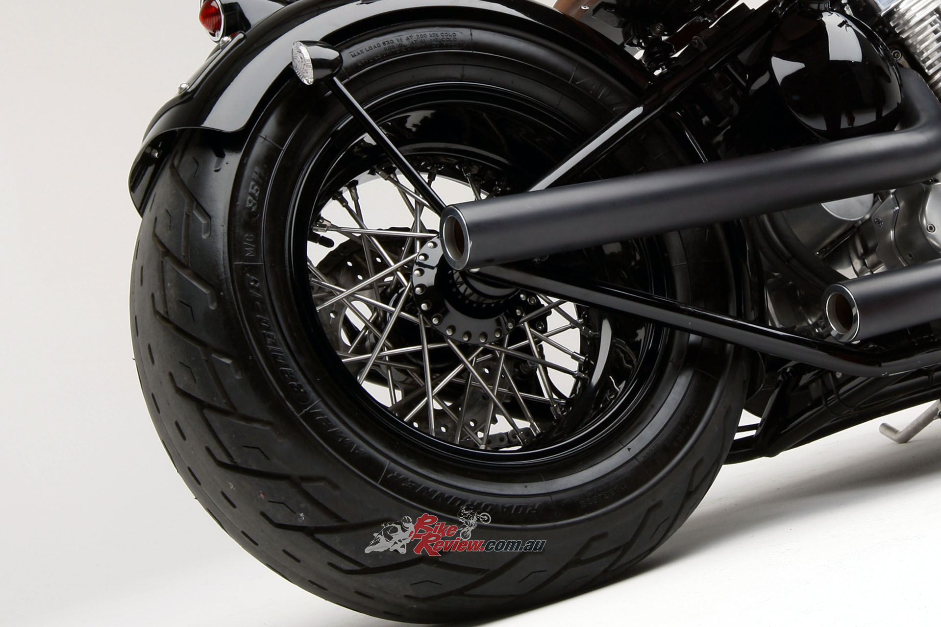 Monster-spoked 15×7” front and rear wheels, with a massive 200 wide Metzeler on the front and a 230 on the rear.