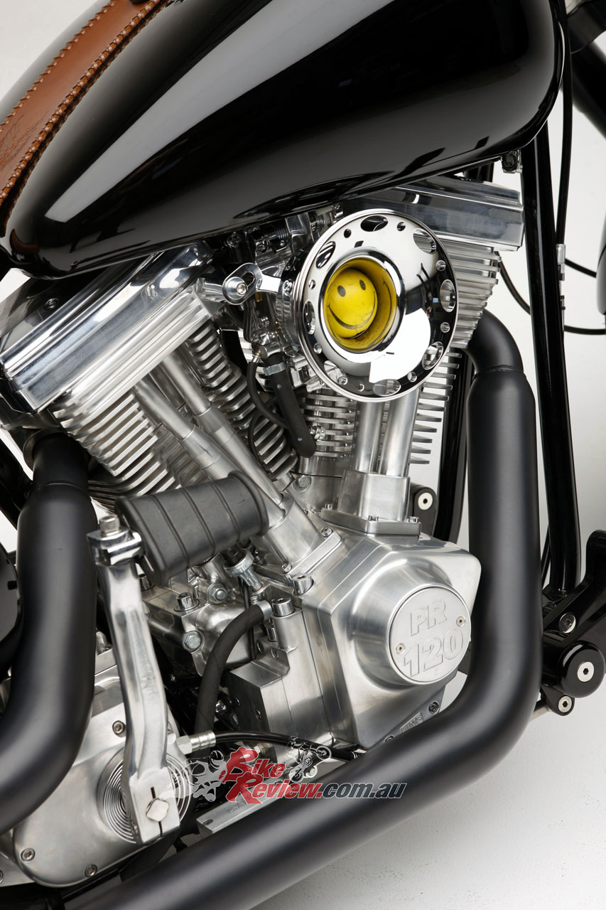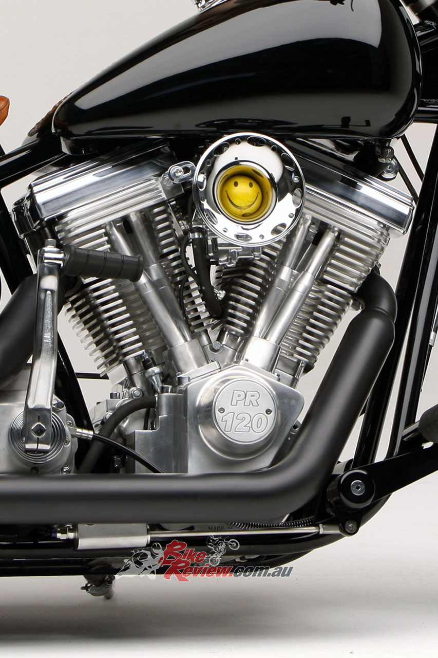A billet Patricks Racing-Satin 120 Cubic Inch with dual Fire electronic ignition, four-stroke, Mikuni 45mm carburettor was used for the power plant.