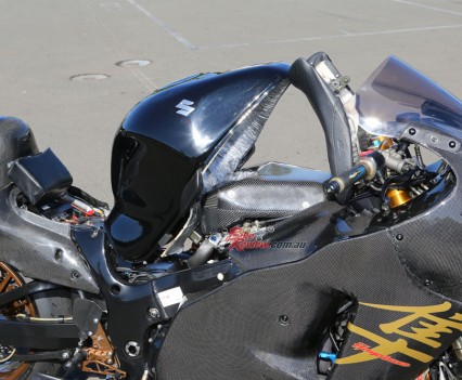 ENGINE: 2004 Gen1 Hayabusa, 84 x 68mm bore x stroke, 1507cc, 14:1 compression, stock cases with oiling modifications, billet 5mm stroker crank from Marine Crankshafts, Carrillo conrods, CP Pistons, Webb 395/378 camshafts, Gen2 Busa titanium IN and EX valves, SAE Outlaw ported and flowed cylinder-head, Extreme Creations high pressure relief valve, Walbro fuel pump, high pressure fuel regulator, Honda S2000 injectors, SAE big bore fuel rail, IM Composites carbon-fibre airbox, stock throttle-bodies, RomRaider flash tunes ECU, undercut gearsets, Brock billet clutch hub and cushion spacer, Quicklapper quickshifter, Brocks Sidewinder exhaust.