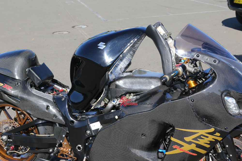 BODYWORK: Carbon-fibre/glass, TC Busa decals, stock fuel tank, Gilles clip-ons, Gilles rearsets, Innovate dl32 and ssi4 data logger