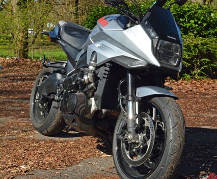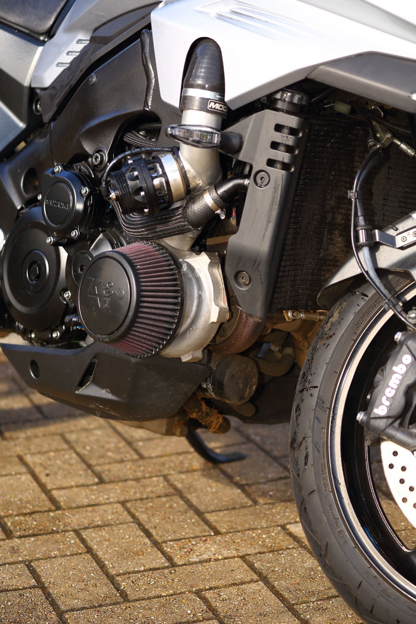 When taking it through the corners, noise aside, we’re once more back on a stock KATANA. That means good brakes, decent road-bike suspension and steady, slightly portly handling. The KATANA is some way off something like a BMW S 1000 R or KTM SuperDuke if you want precise, lightweight supernaked handling – it’s maybe closer to the likes of a Kawasaki Z1000SX or Z H2. The extra weight of the turbo is offset by the missing stock exhaust system, so you’re at about the same as standard in terms of mass. The stock tyres aren’t amazing, and you can do better with some sportier aftermarket replacements of course – which I’d do straight away to be honest.