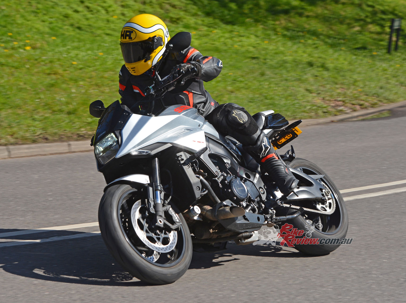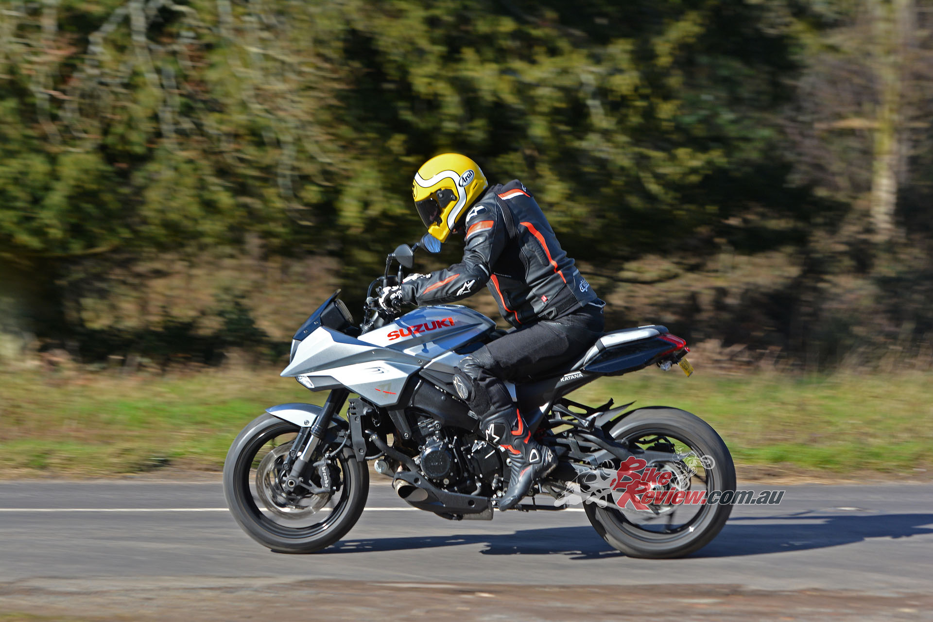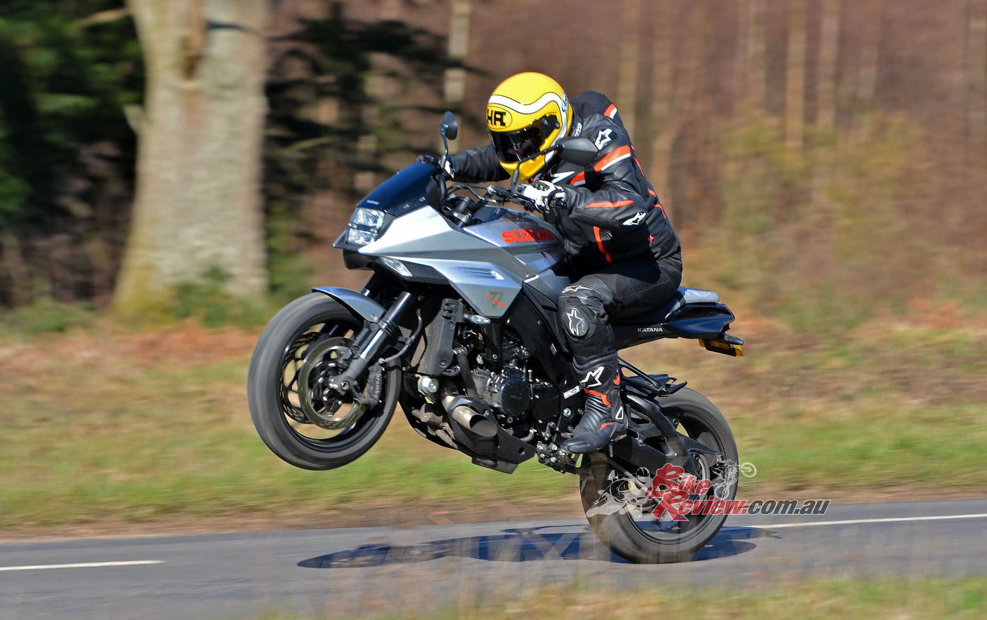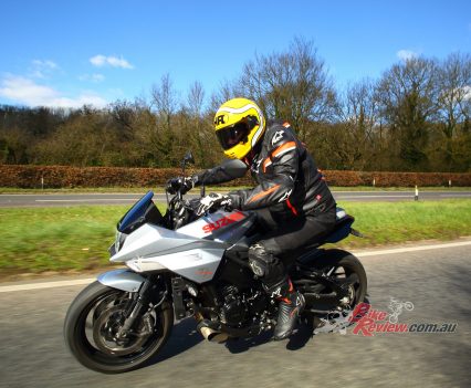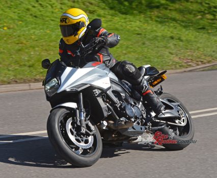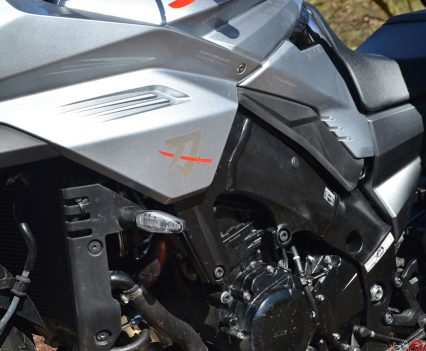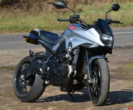 But modulating the gas when the front end starts to come up is difficult – as you roll off, the power cuts sharply. Those minor gripes aside though, this genuine 250bhp+ powerplant definitely gives the KATANA something to shout about in terms of performance, besting even the wild Ducati Streetfighter V4 and Aprilia Tuono 1100 when it comes to ballistic levels of power.