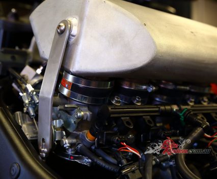 Enter Sean Mills, owner of Big CC Racing in the UK. Sean’s usual work is building engines for drag racers and land-speed-record attempts – with 500bhp turbo Hayabusas as the daily earner. He’s also got some previous with the old KATANA too – his suck-through turbo Spondon Katana drag race bike is a work of art that’s been in development for more than 20 years.