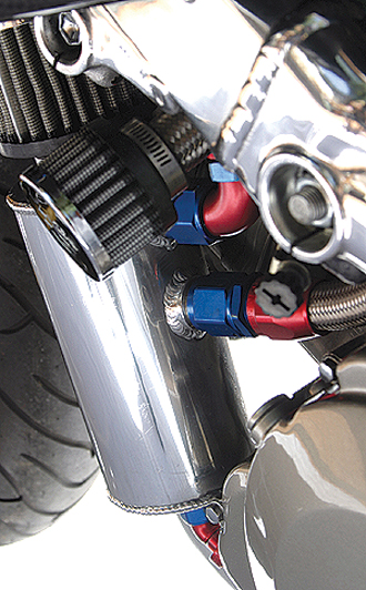 All the hoses and wiring are encased in either Motorsports Connections hoses, braided lines or convoluted stainless steel tubing. It’s a top look that really adds to the ‘Sentinel’ theme.