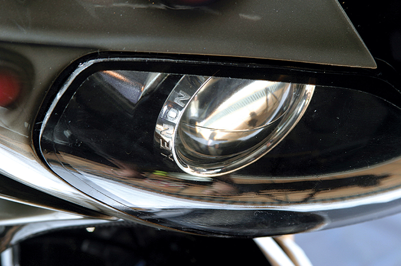The headlight unit is fantastic. Rupert sourced a pair of BMW M5 HIDs and then made a perspex lens from his own mould. Ben Shaw then put the light together and the result speaks for itself. “Standard halogens are about 1000 lumens each but these are 3500 and only use 35 Watts.”