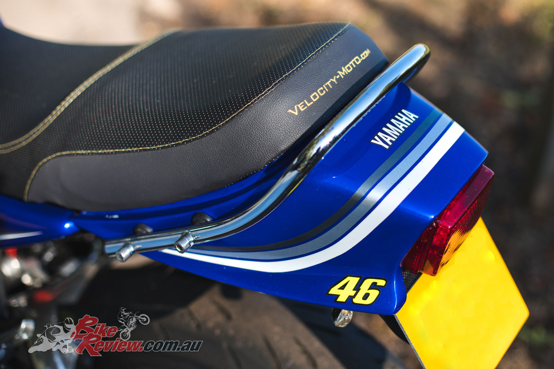 For Hag, who’s been building tasty racers and track-day machines for many years, the project sounds like a labour of love, and combined his current business – called Velocity-Moto.com – of offering trick bike parts with his experience of producing graphics and signage for posters and buildings.