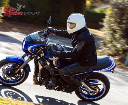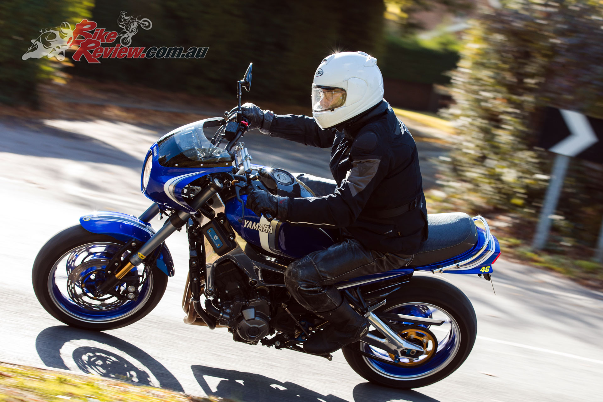 With peak power of 115bhp at 10,000rpm on tap, there’s more than urge enough to keep you busy up to the practical aerodynamic maximum of about 130km/h. In stock trim, the XSR900 is geared for 240km/h, so at the 110km/h legal limit, the engine’s singing along at a relaxed 4700rpm.