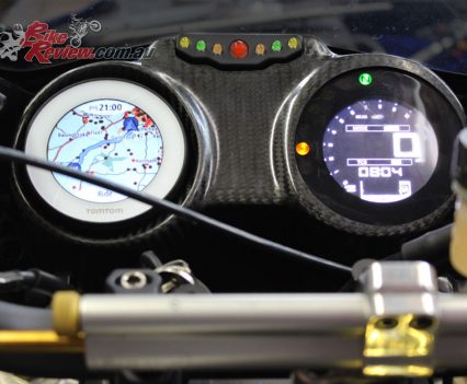 Dual clocks on the Moto Velocity use the stock XSR instruments and a TomTom GPS
