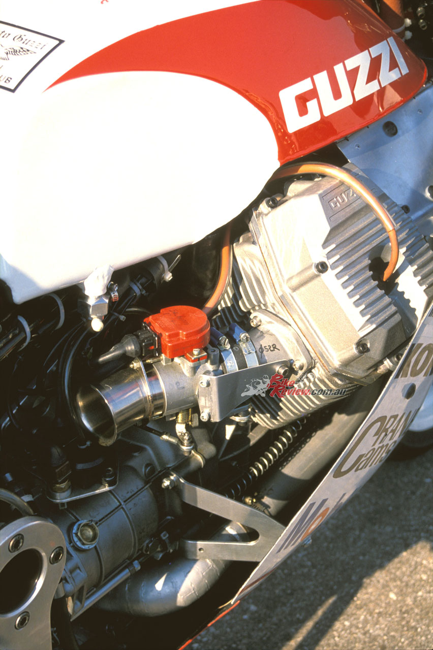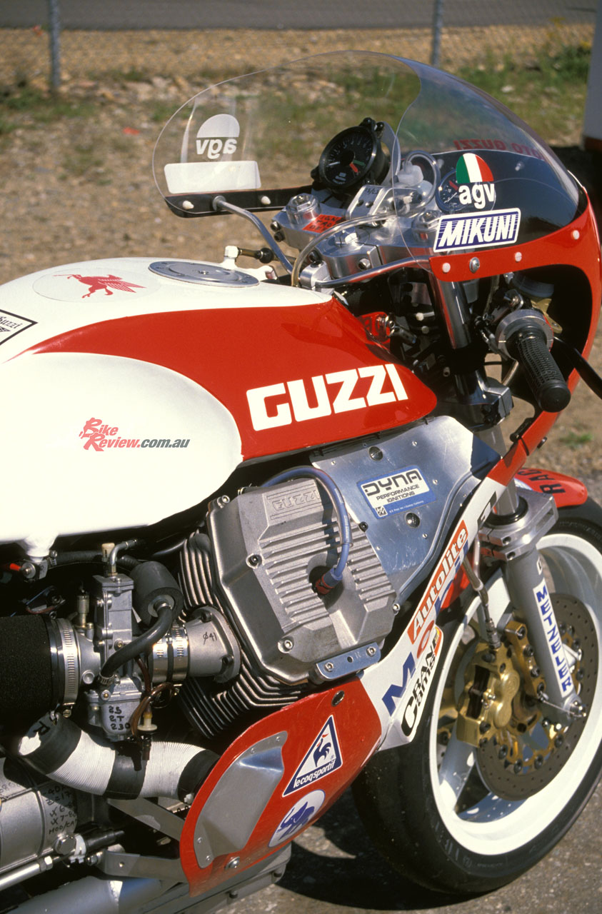 The designer of the air-cooled 90º V-twin 8V Daytona motor was Umberto Todero, a former aide to legendary Guzzi designer Giulio Carcano, as one of the engineers involved in the firm’s title-winning GP team of the 1950s, when they won the World 350GP Championship five years in succession. Todero designed the 8V engine in 1986 as a cost-efficient option for Guzzi’s future, and with full silencing and emissions equipment it produced 92bhp at 7,400rpm in 90 x 78mm 992cc form as it finally reached the marketplace in 1992. Wittner ran it in this guise at Daytona in 1988, making that third place rostrum result all the more impressive, given the calibre of the opposition.