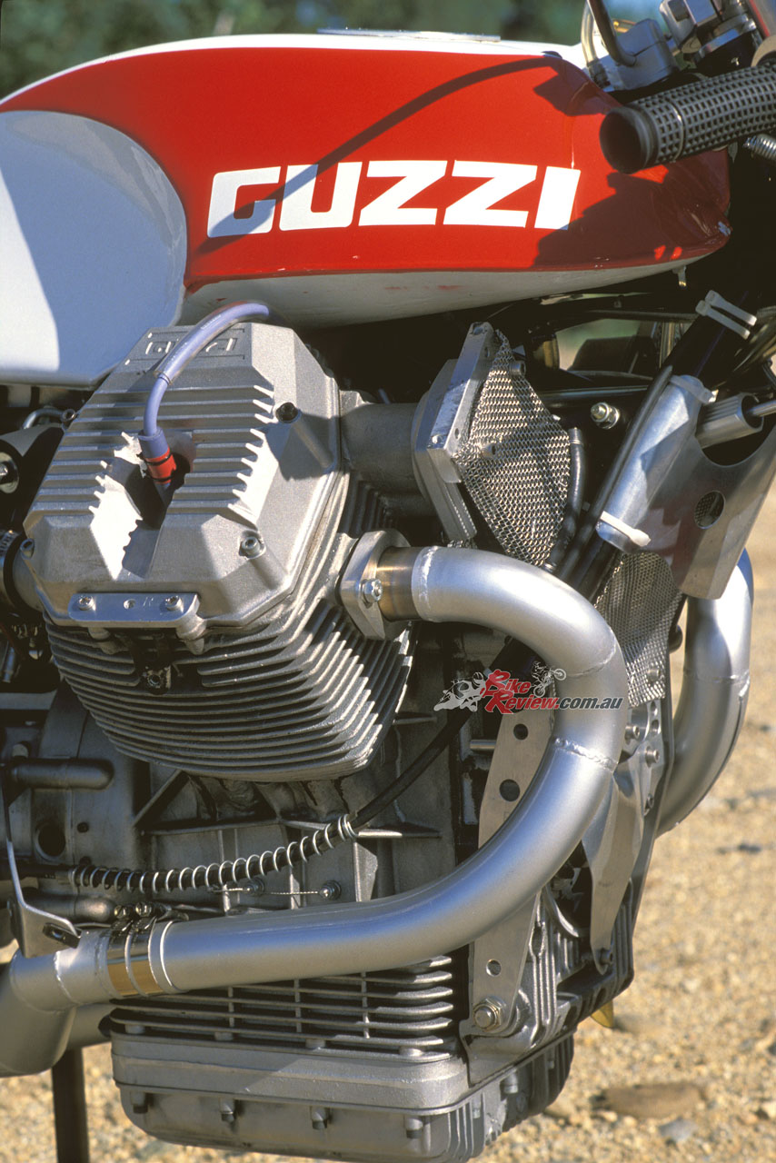But I also found when I rode the Dr. John’s 8V Guzzi that the motor was reluctant to rev as high as the 10,000rpm peak John Wittner had been told it was supposedly capable of. Midrange performance was its strong point, with the engine coming strongly alive at 5,200rpm once the megaphone exhausts cleaned out, with a strong build of power as it revved eagerly to around 9,000rpm, and maximum torque available at just 7,300rpm, according to Dr. John. But at just over nine grand it ran out of breath, which in turn meant that the benefits of those eight-valves and reduced inertia and friction obtained by using paired valves with an overhead camshaft design, weren’t yet as great as they surely should have been.