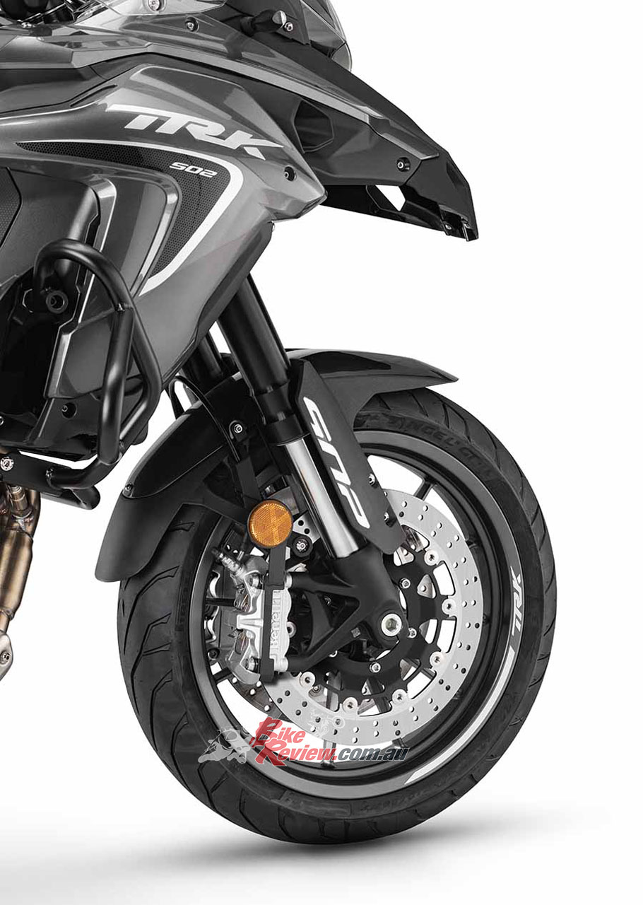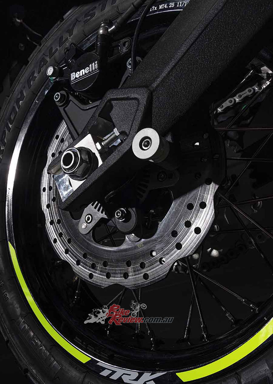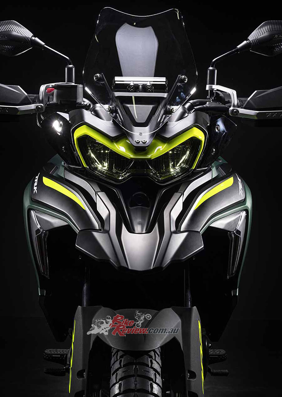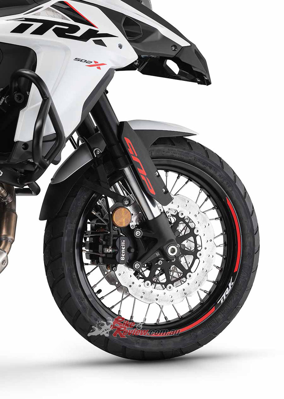 Benelli say the TRK 702 X is a pure adventure bike, as is the case with the TRK 502. The TRK 702 X features more adventure focused features over the base model, including a larger front wheel and more suspension travel.