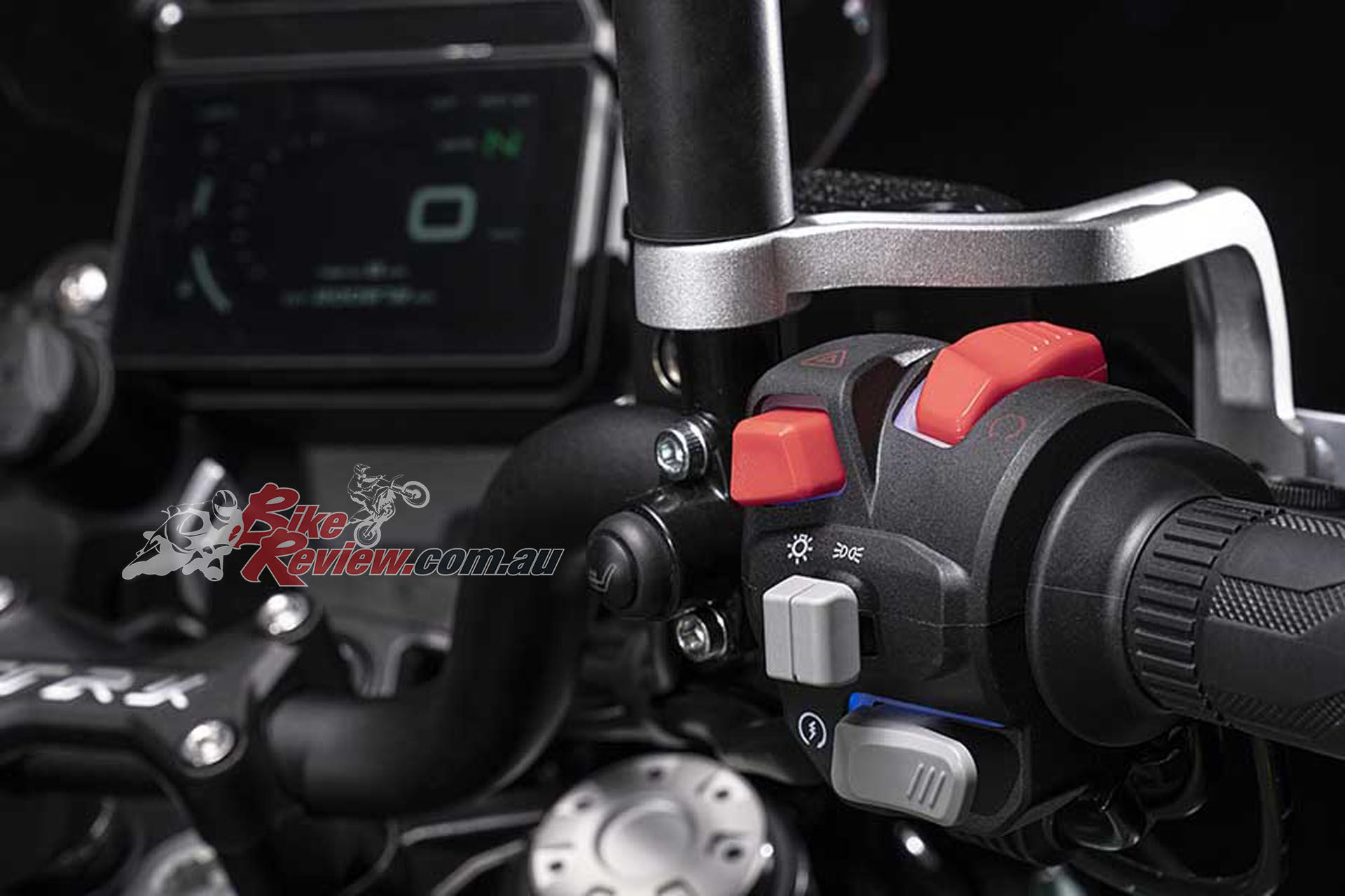 The braking system is equipped at the front with a 320mm diameter semi-floating double disc with a four-piston radial calliper and ABS, and at the rear with a 260mm diameter disc with a single-piston floating calliper and ABS. The aluminium alloy 17” rims, available in white, are fitted with 120/70 and 160/60 tyres respectively. The tank capacity is 14 litres. The bike also features an innovative dashboard, equipped with a 5in colour TFT display, which has a Bluetooth connectivity.