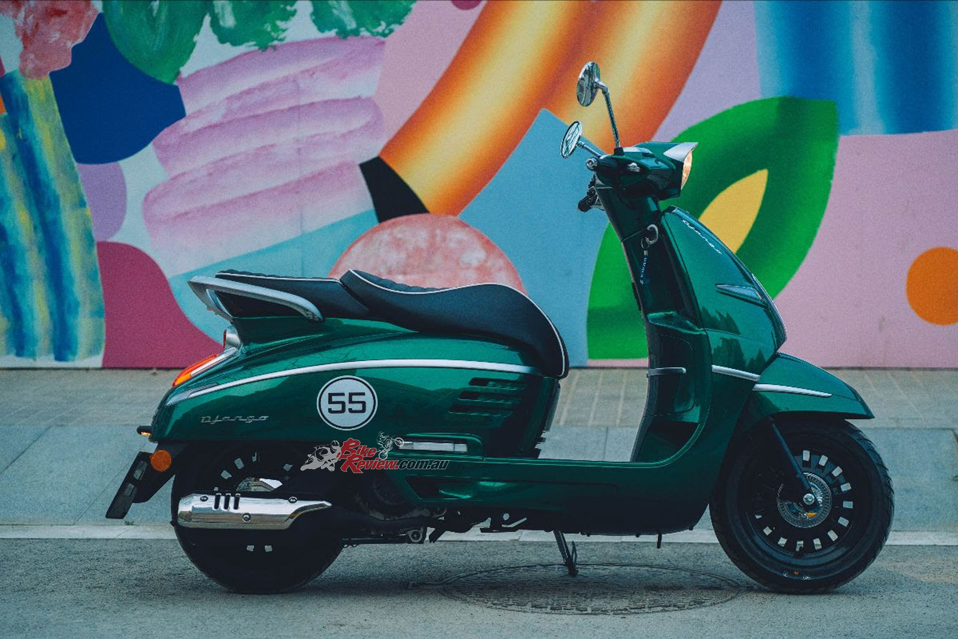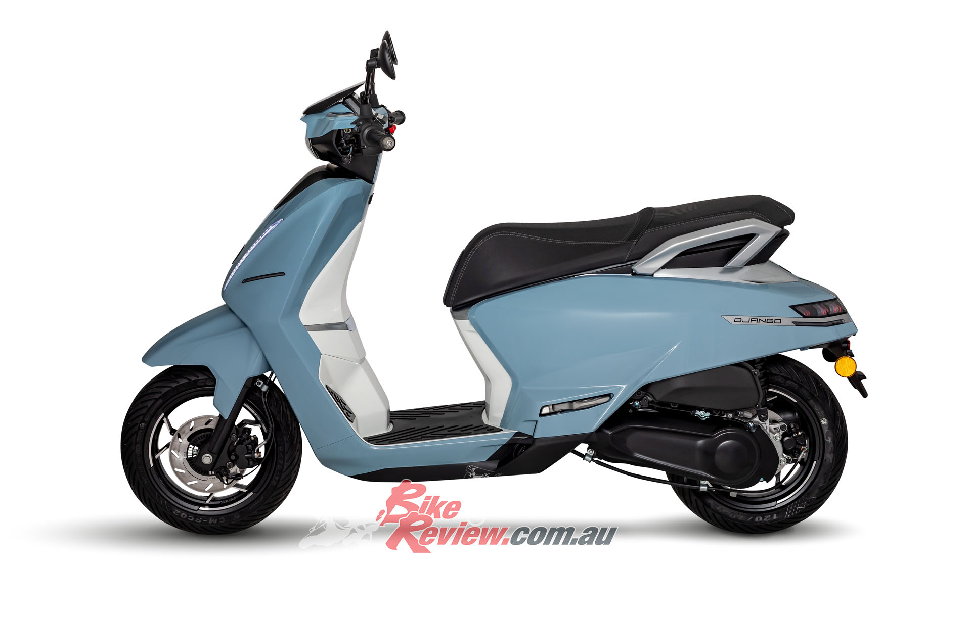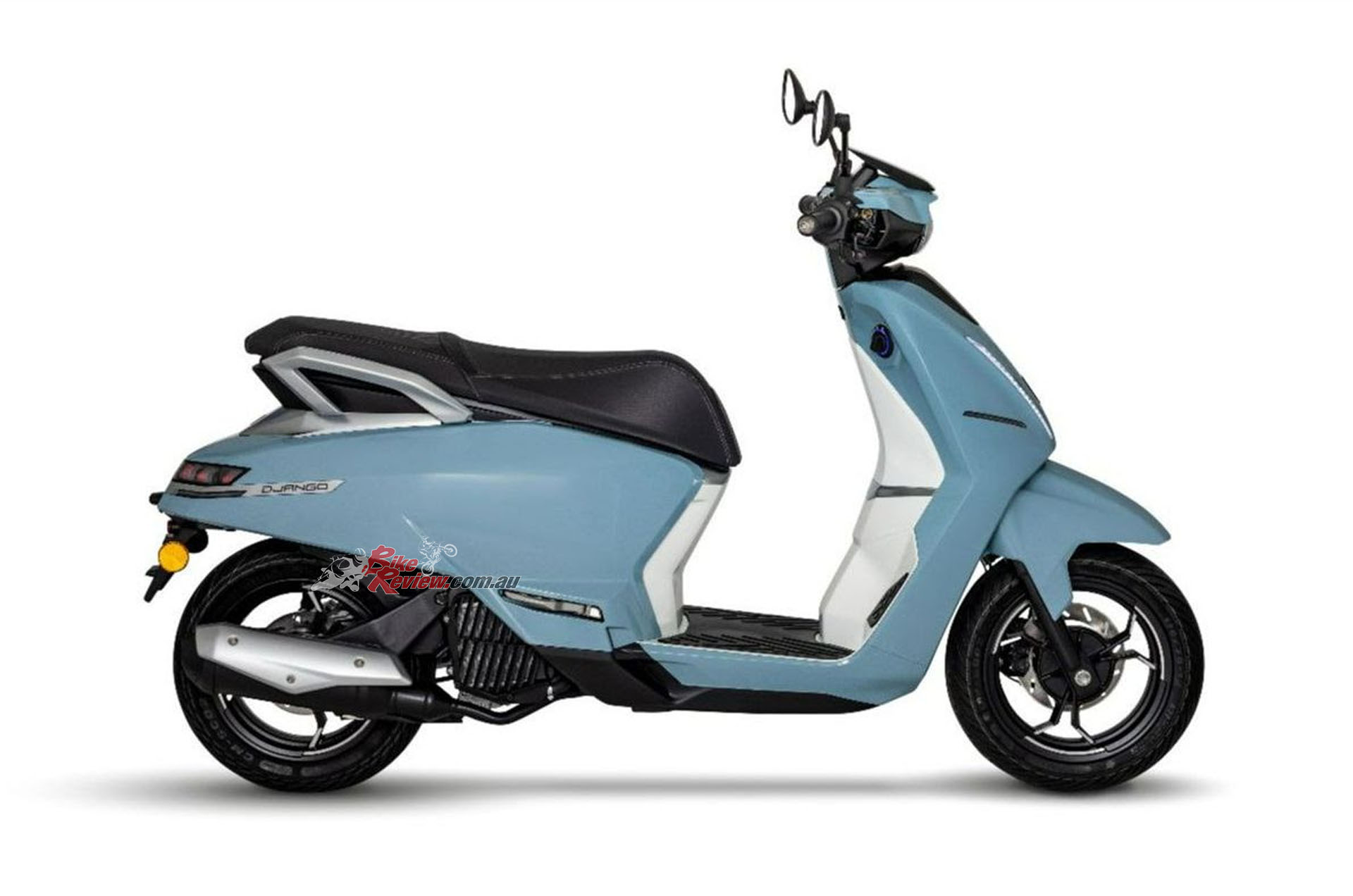 The Django will come in a 125cc and 150cc variant. In 2023, Django Shadow 150cc will join the range This version of the vehicle offers a unique and elegant design, the most arty in its class and now also this new “Adventure Green” colour, halfway between grey and dark green.