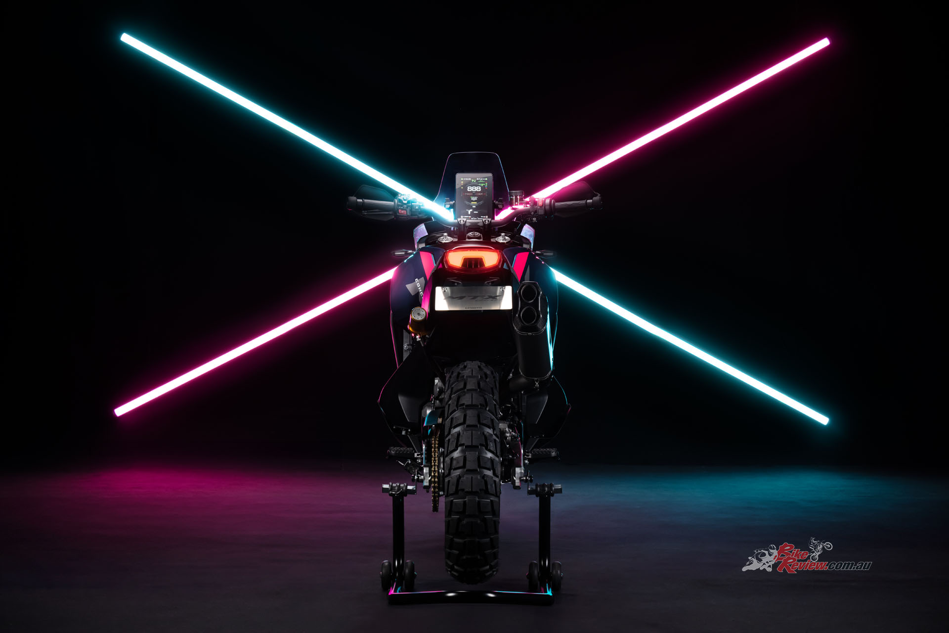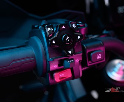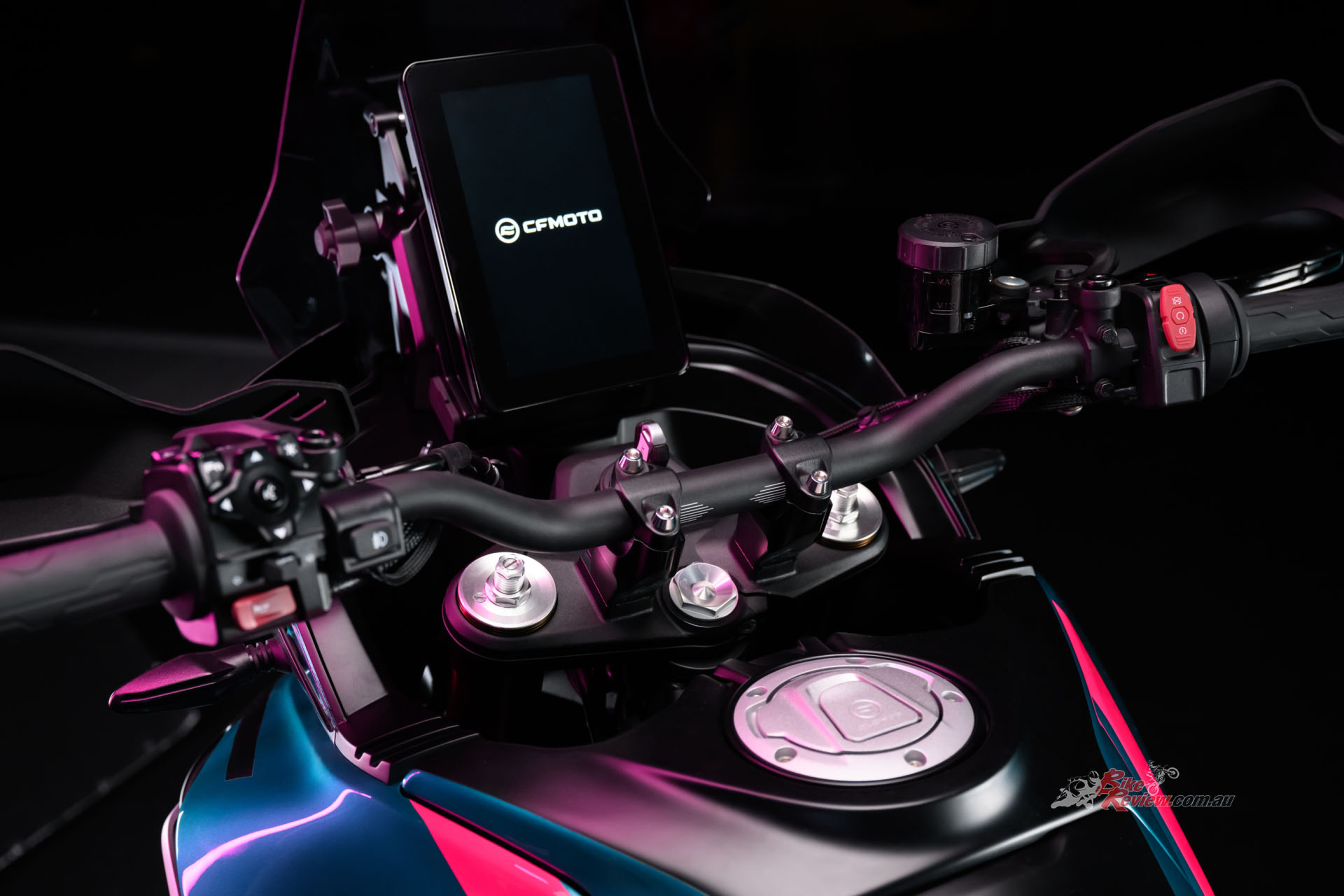 • A vertical 8in TFT touchscreen – inspired by rally bike navigation towers.