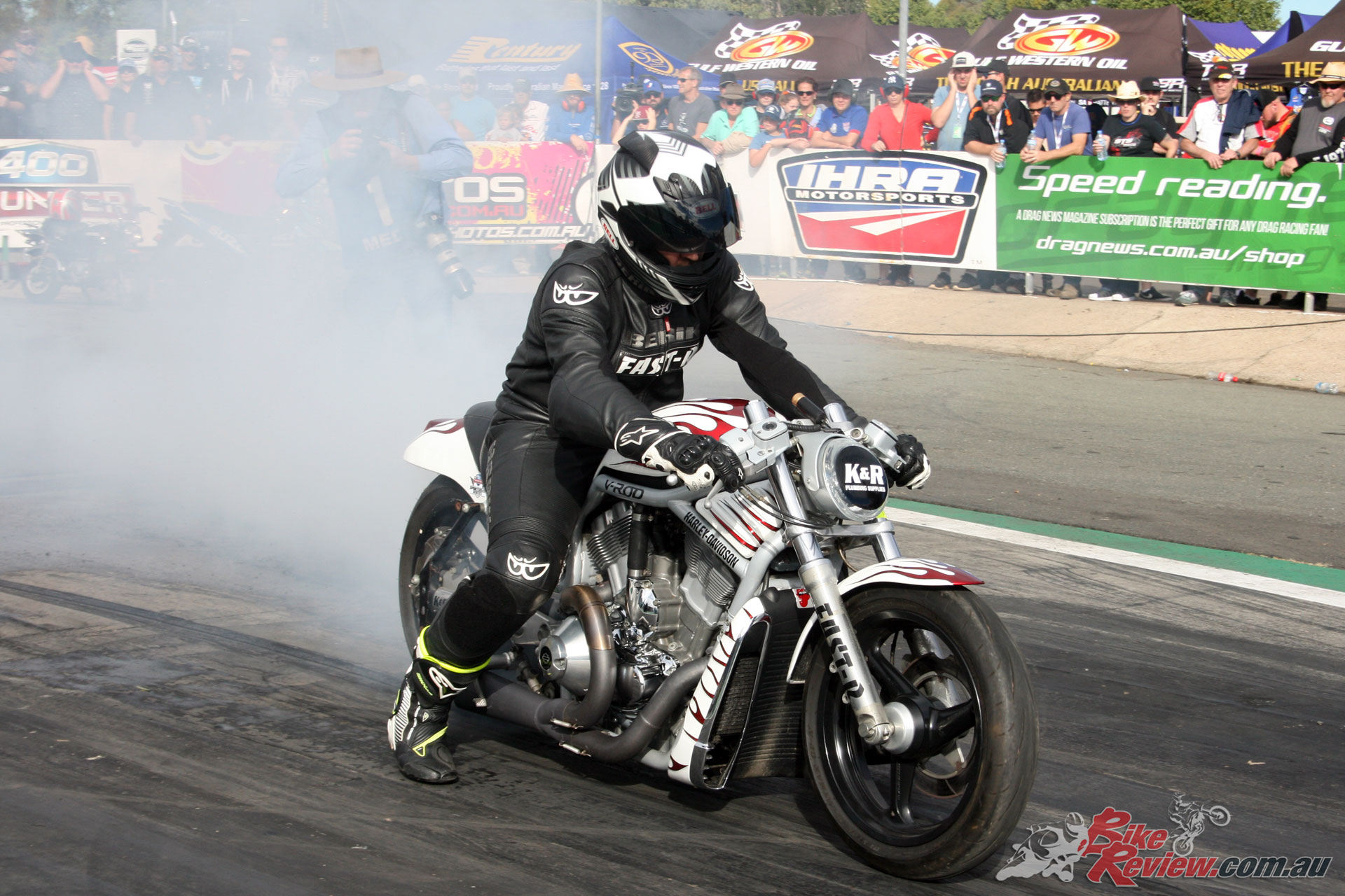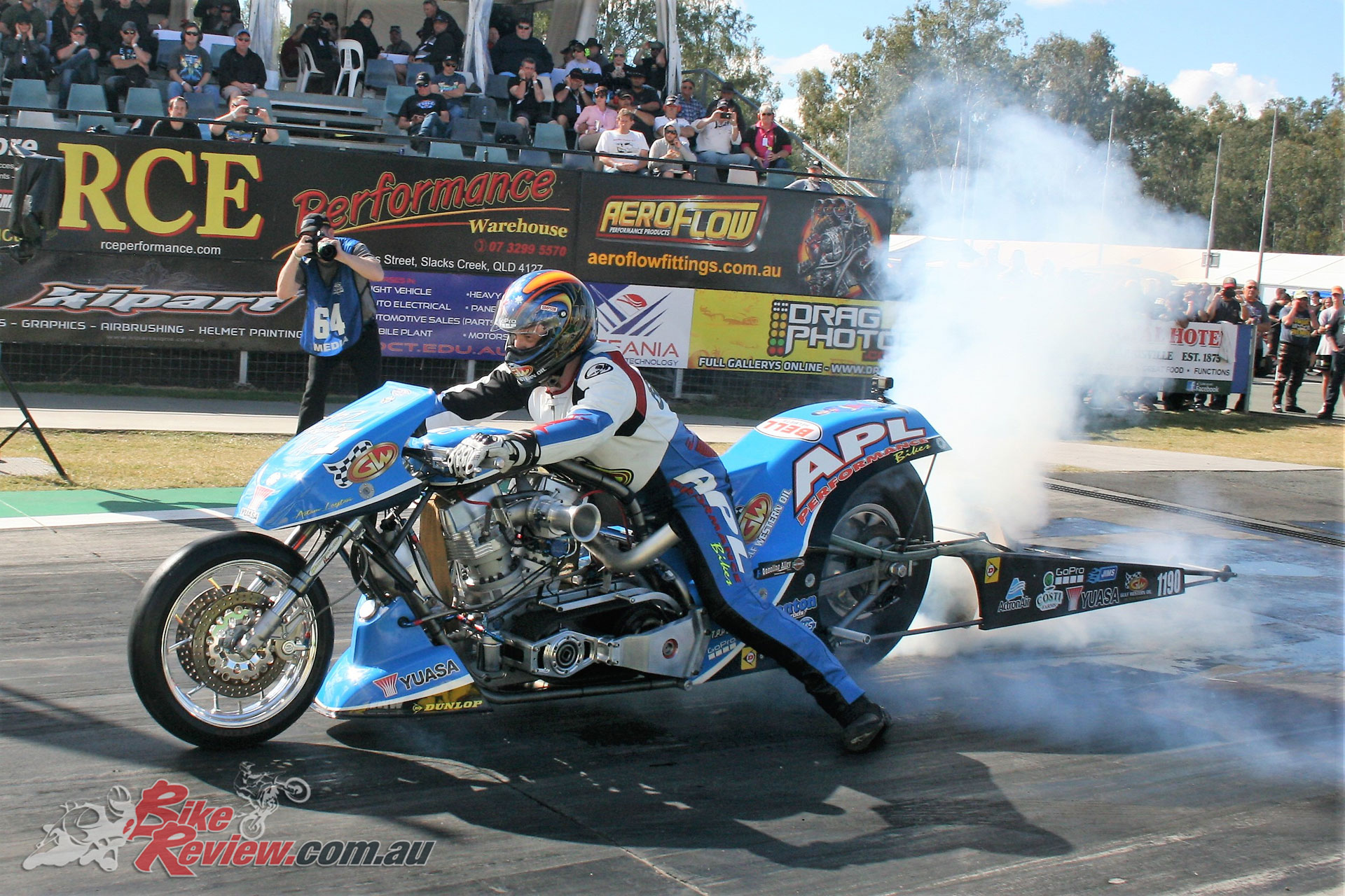 Professional classes allow racers to accrue points over the season. The more you earn, the more you get to include in your final tally. Bonus points are included for qualifying, low ET and top speed. It’s a good system that rewards effort. Under IHRA Australia sanction, the professional bike classes are Top Bike and Pro Stock Bike.