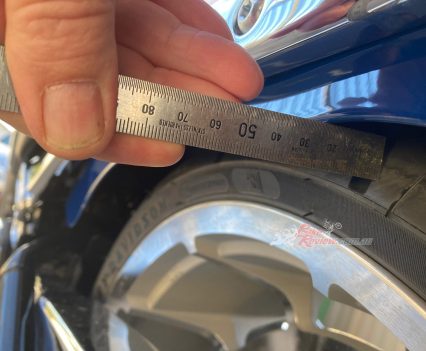 It’s a cruiser, and just needs to be treated as such, but even the slightest push sees it turn into a difficult motorcycle to ride. Later at BR HQ, when I am washing the bike, I notice the wheel offsets, common for the solid wide wheel H-D models, but seemingly way more pronounced on the Fat Boy. Problem identified… No wonder the bike leans a little in a straight line too. Both wheels are off centre to the centre of the motorcycle…