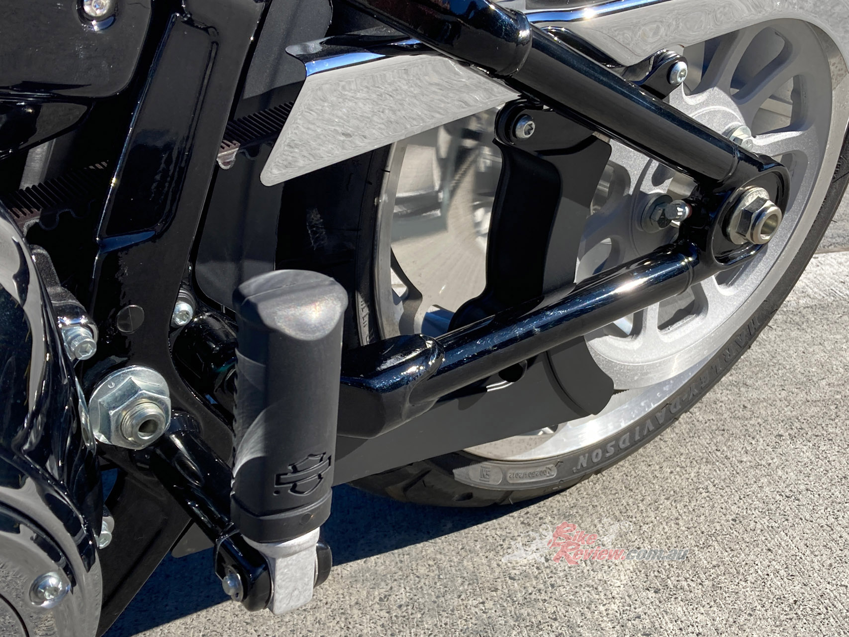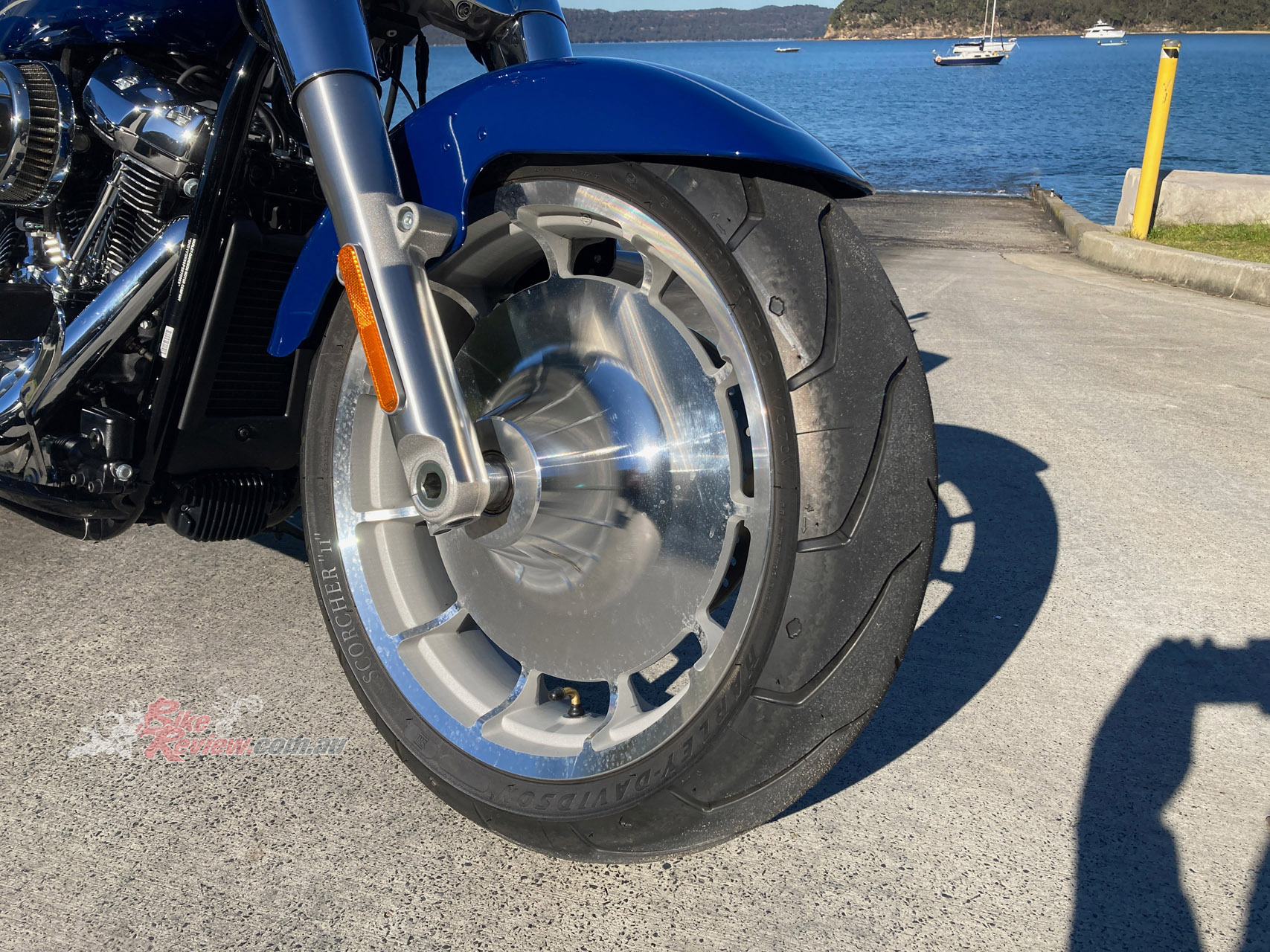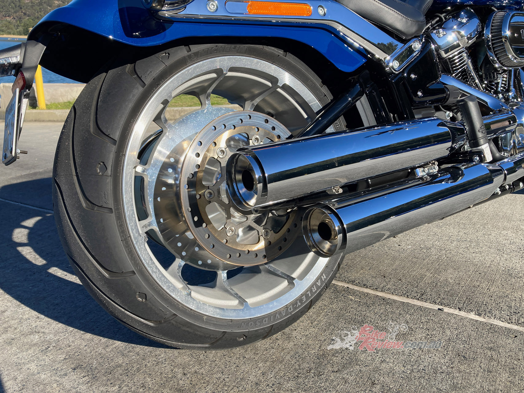 The Milwaukee Eight has been the heart for many Harley-Davidson models for years now, and it’s still an awesome engine. The 109ci was dropped from the Fat Boy lineup from 2020, leaving the 114 to do duties. Retaining the classic 45-degree V-Twin cylinder angle, the Milwaukee-Eight engine produces 10 per cent more torque (varies per model) than previous year models and features four-valve cylinder heads that offer 50 per cent more intake and exhaust flow capacity. The Fat Boy motor makes 69kW[93hp]@5020rpm and 155Nm of torque@3000rpm. Claimed fuel consumption is 5.5L/100km, over our test we got an average of 6.3L/100km.