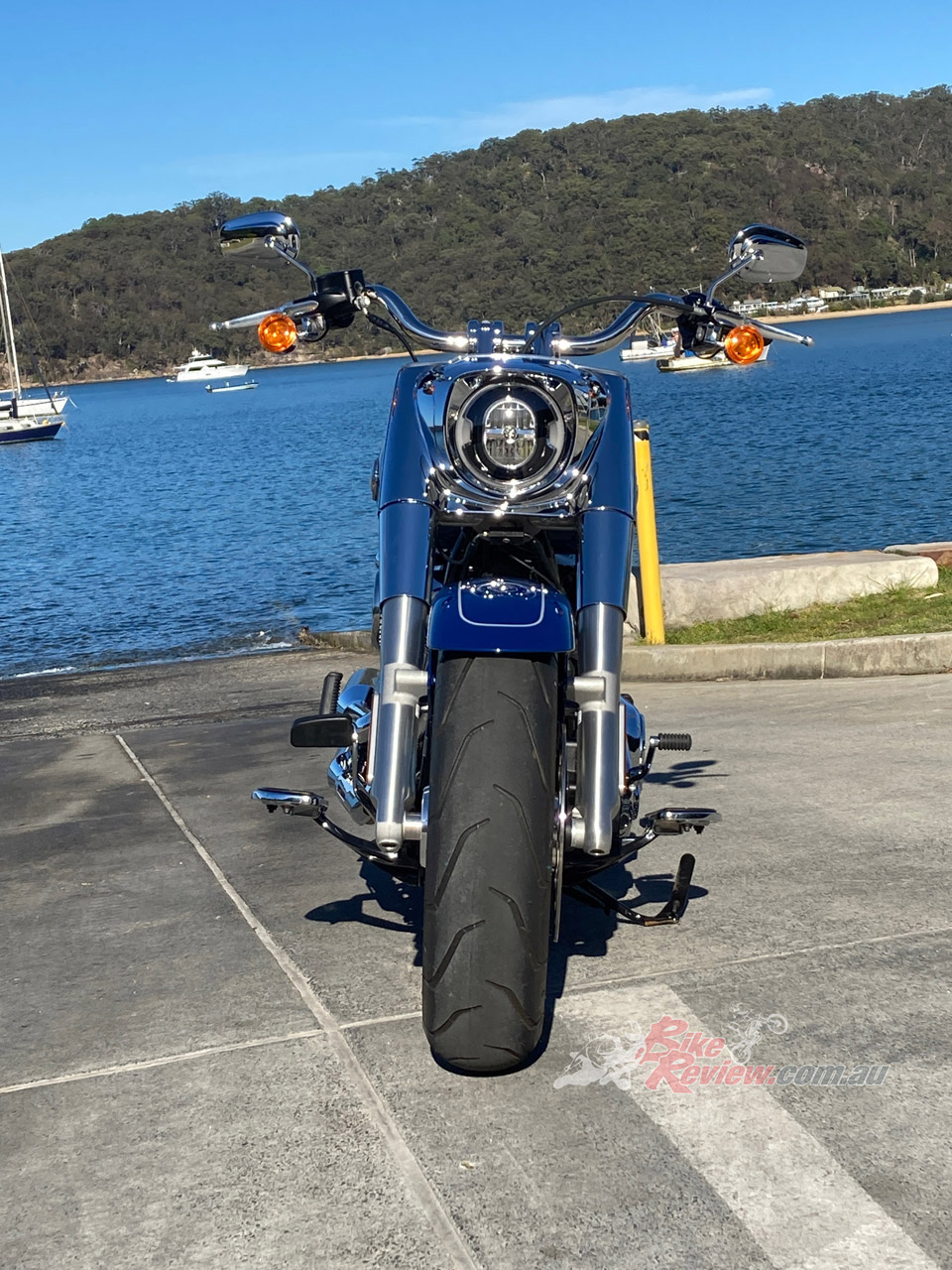Running a massive 240-section 18in back tyre and a 160-section front, cornering is second to looks on a bike like this.