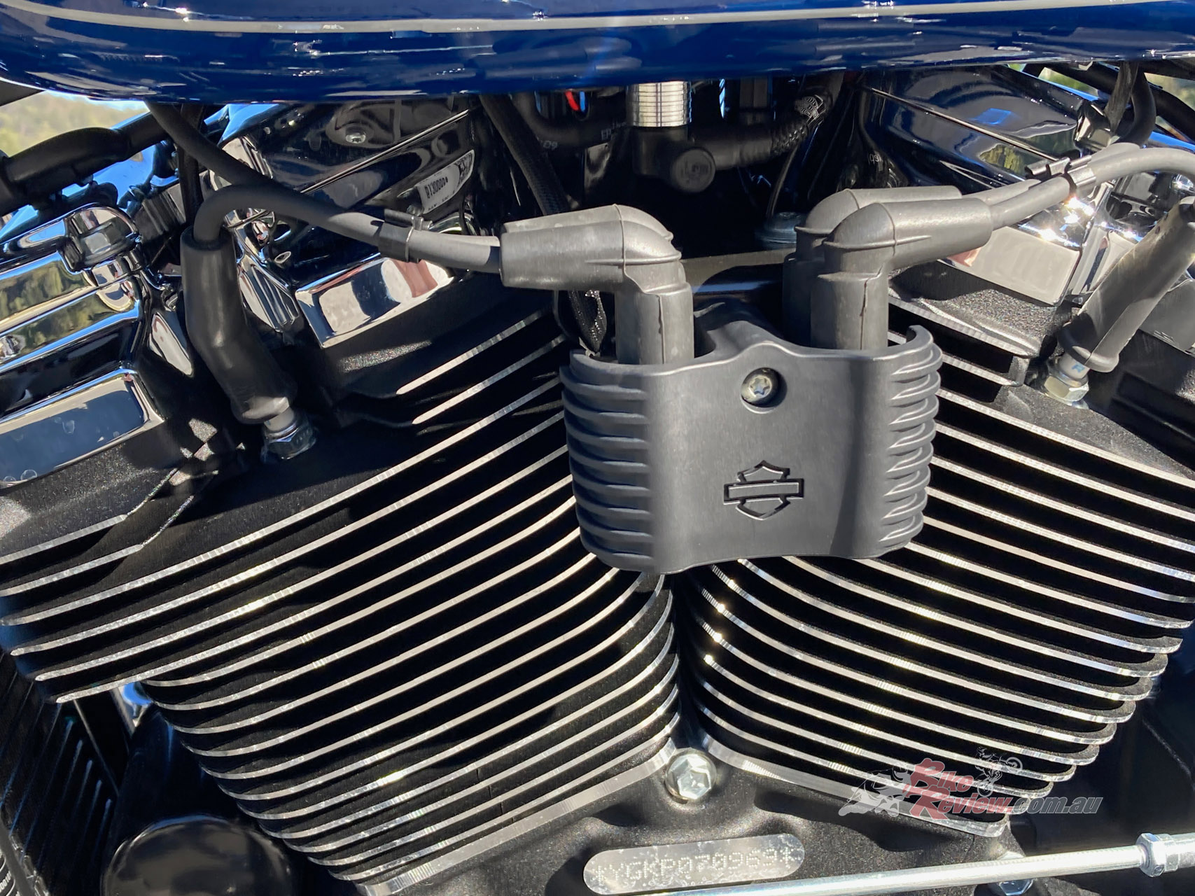 The Milwaukee-Eight engine is counter-balanced to cancel 75 per cent of primary vibration at idle, retaining the classic feel of a Harley V-Twin while being very smooth at highway speeds. A new heat management strategy for all Milwaukee-Eight engines improves rider and passenger comfort.