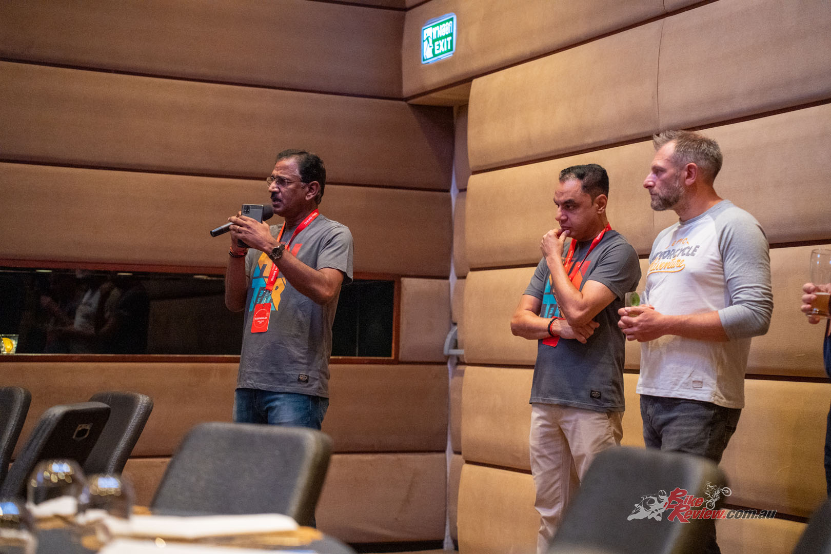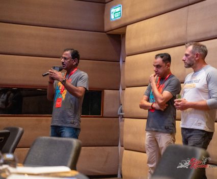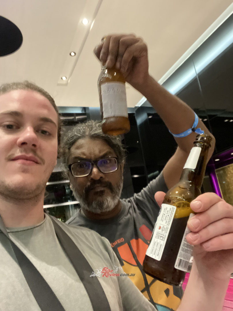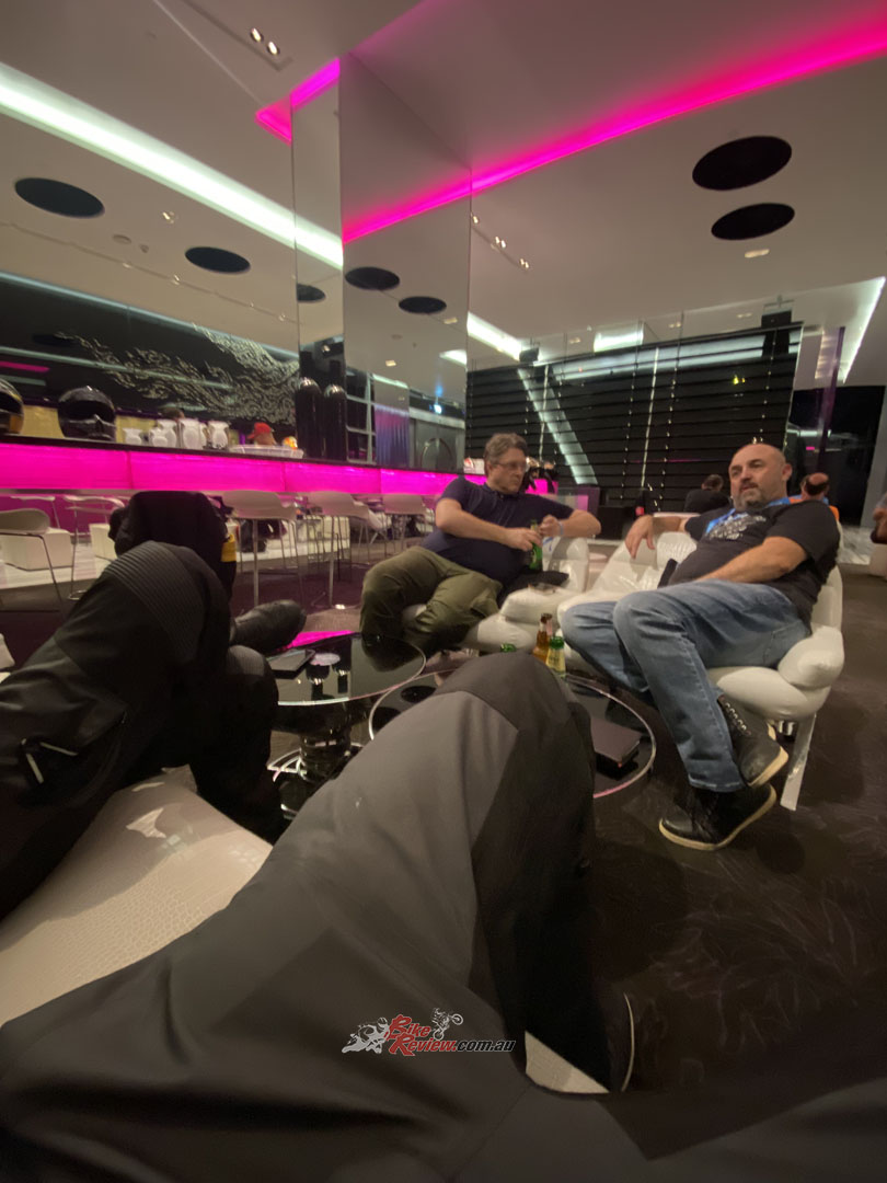 Travel light… That’s the aim of the game when going to a launch. Although, a singlet and shorts would’ve helped as Nick was sweating to death in his riding jeans!