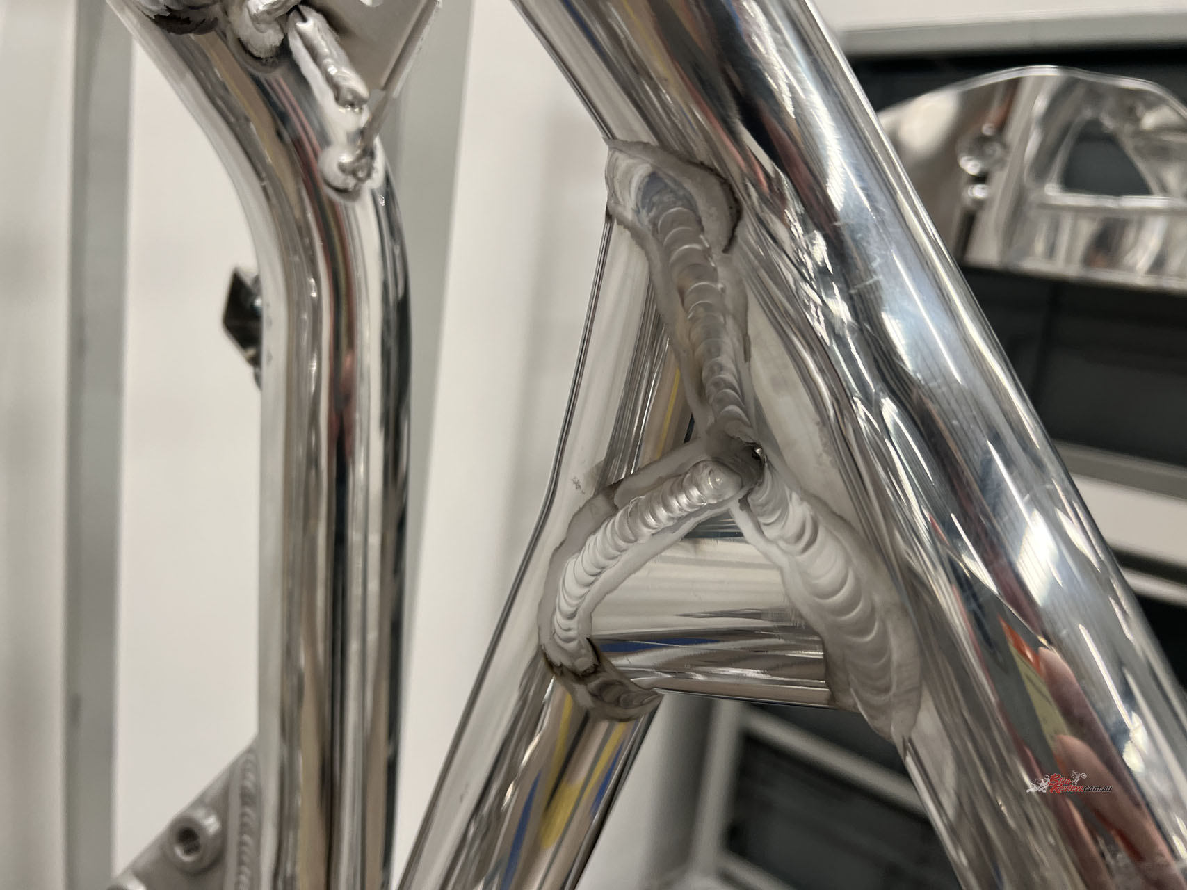 From here, we make our way to the crown jewels of Norton’s manufacturing, the hand-welded frame. Here, I had the opportunity to take photos of a few finished frames and see some rejected ones. The process that goes through approving these frames is insane. The rejected frames had imperfections that were simply impossible to see via the naked eye. Sure, a machine will most likely get it right every single time, but nothing can replace the artwork of a tig weld laid down by hand. That’s why you pay the big bucks for these motorcycles.