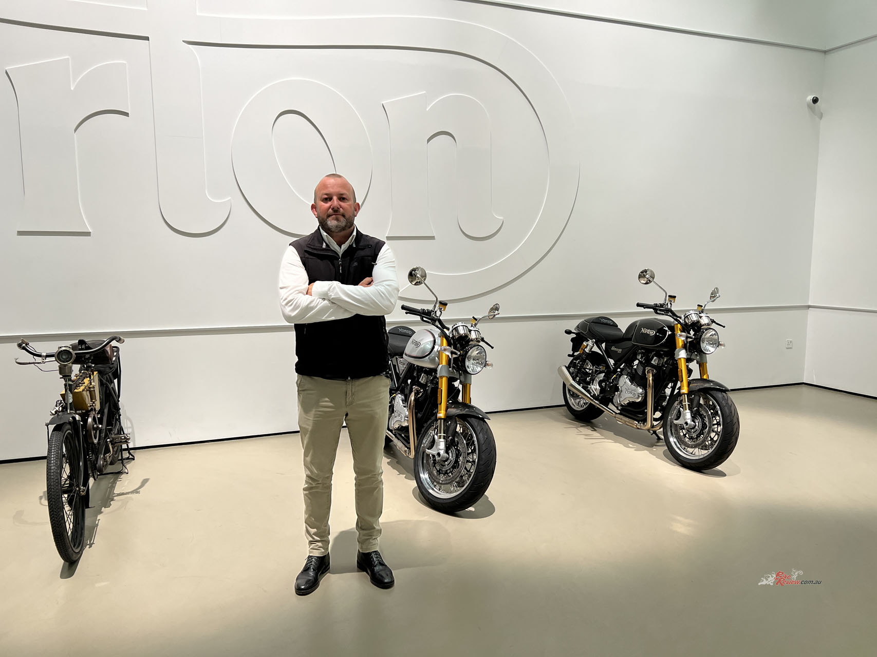 Walking up to the front doors, there’s a plethora of Norton Commando 961 SPs and CRs lined up out the front, a personal favourite of mine in terms of looks. I was booked into riding one of these later in the day; you can check out my quick test on the SP here…