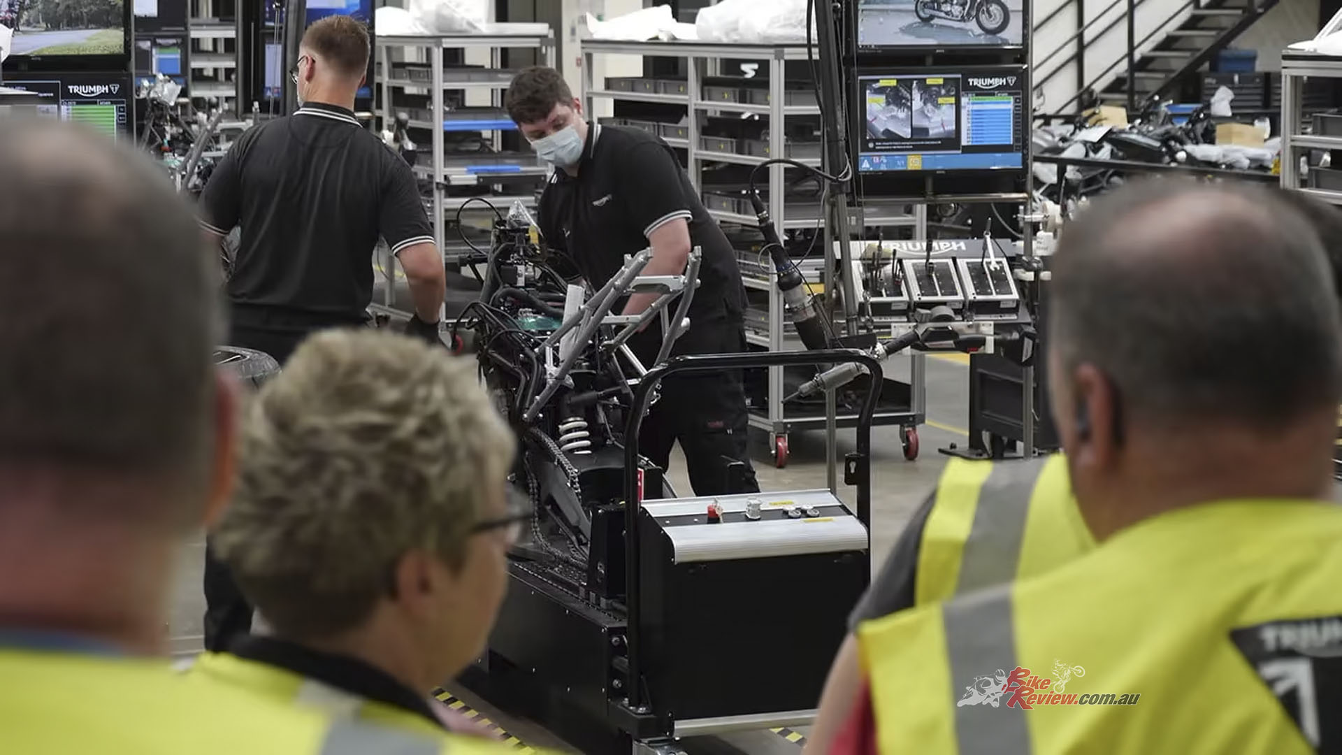 We pile in and get given our special little hi-vis vests and a speaker to hear precisely what Danny is showing us. Before heading out into the factory, he runs us through where the bikes are currently being constructed and distributed worldwide.