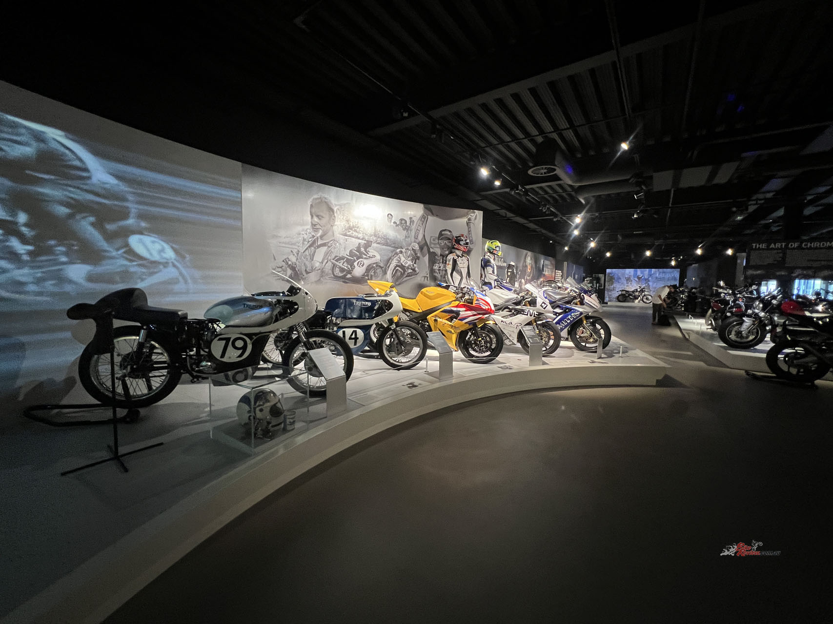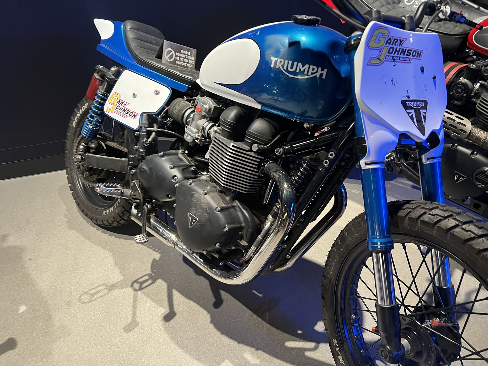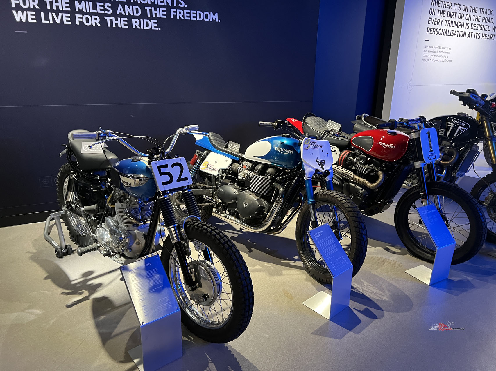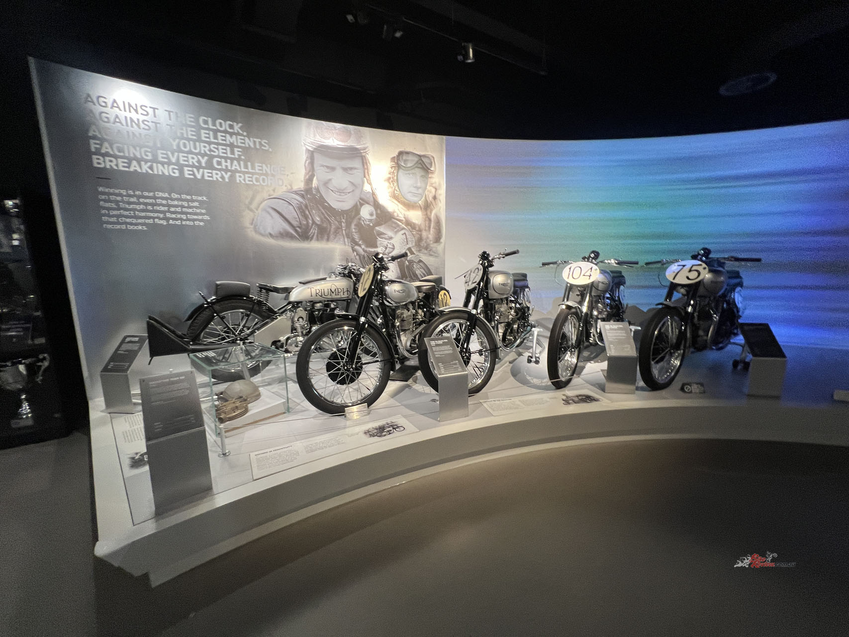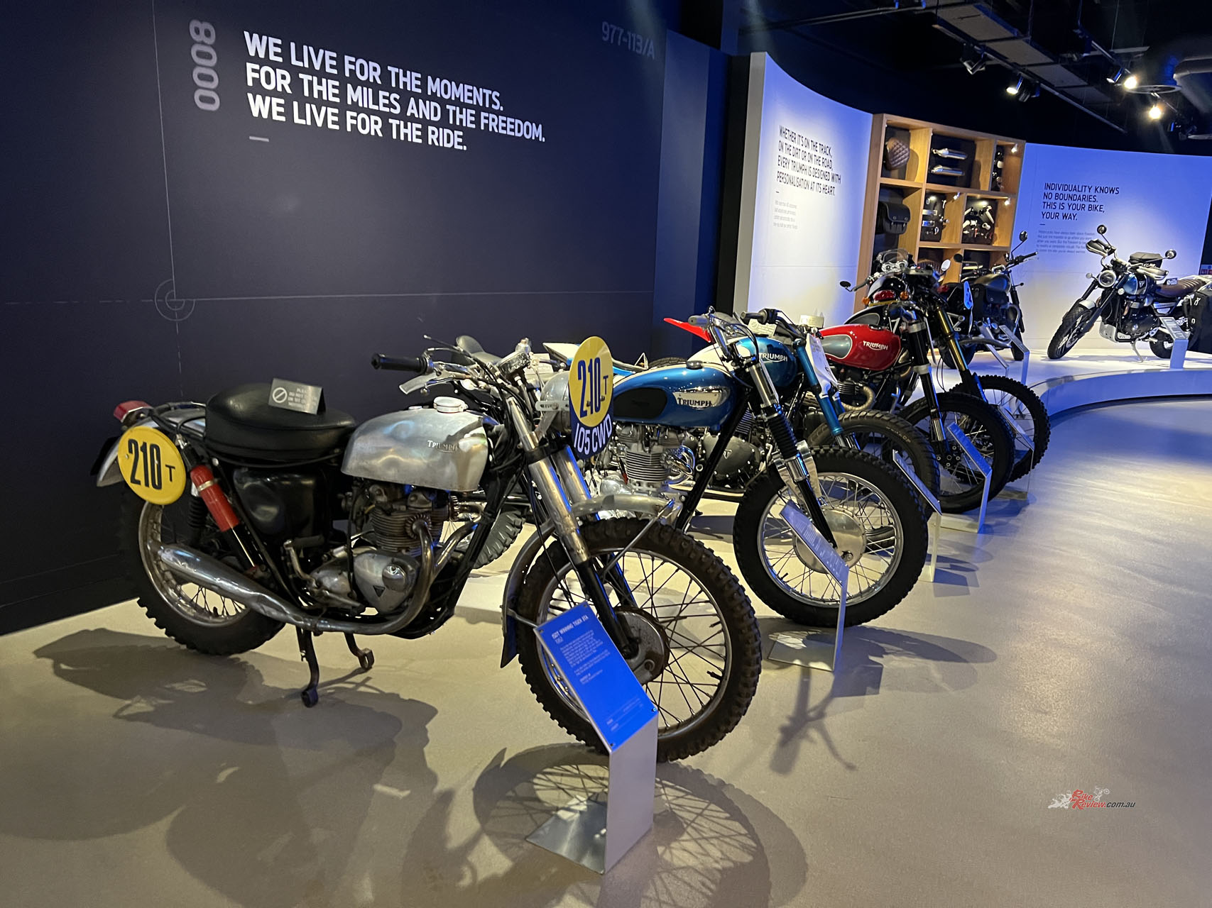 You’re in luck if you’re a Steve McQueen or a Bond fan. In pristine condition is the original Great Escape TR6 Trophy sitting on display. It’s hard to think of a Triumph more iconic than this, let alone a motorcycle that multiple generations of people can identify. Also included in the exhibition are all the Triumphs used in the James Bond movie “No Time To Die”, including Daniel Craig’s personal Scrambler 1200!