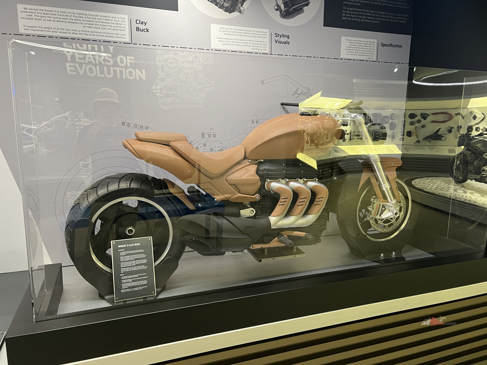 Upstairs, there are some iconic ISDT, Flat Track and other dirt-centric machines. This is paired with plenty of current models and an information overload of exploded views of engines, suspension components and even original clay models. Even if you don’t get in for the tour, it’s worth heading out there for the free exhibition.
