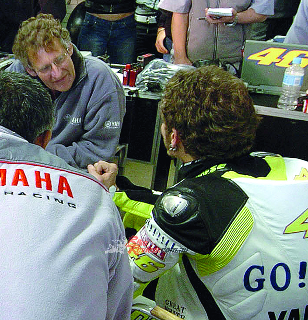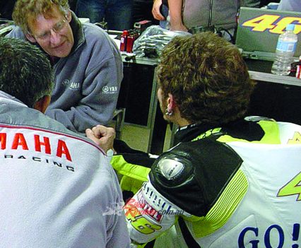 “But first, I decided I must allow him to choose which kind of engine he wants to ride. So when he tested for Yamaha at Sepang in January, I prepared four different engines for him to test, each with a different character, and each with appropriate chassis type, hoping that he would choose the one we were working on. But first, I let him ride the existing 2003-model YZF-M1. He said, “Hmm – very aggressive – but I can manage this, with some changes.” I was quite surprised to hear this – but I did not say anything till he tried the other choices. Then at the end, I let him ride the new prototype machine, knowing that at this stage it didn’t have so much power, because it was still so new – about 10 bhp less than the existing 2003 model. Immediately, Valentino says ‘This one is the best – but I need more power!” I was very happy, of course – but it was thanks to him that Yamaha engineering staff could work in the correct direction for this season’s championship. He is a genius – his feedback is so precise and he is so quick to assess changes, that we can speed up our development time quickly”