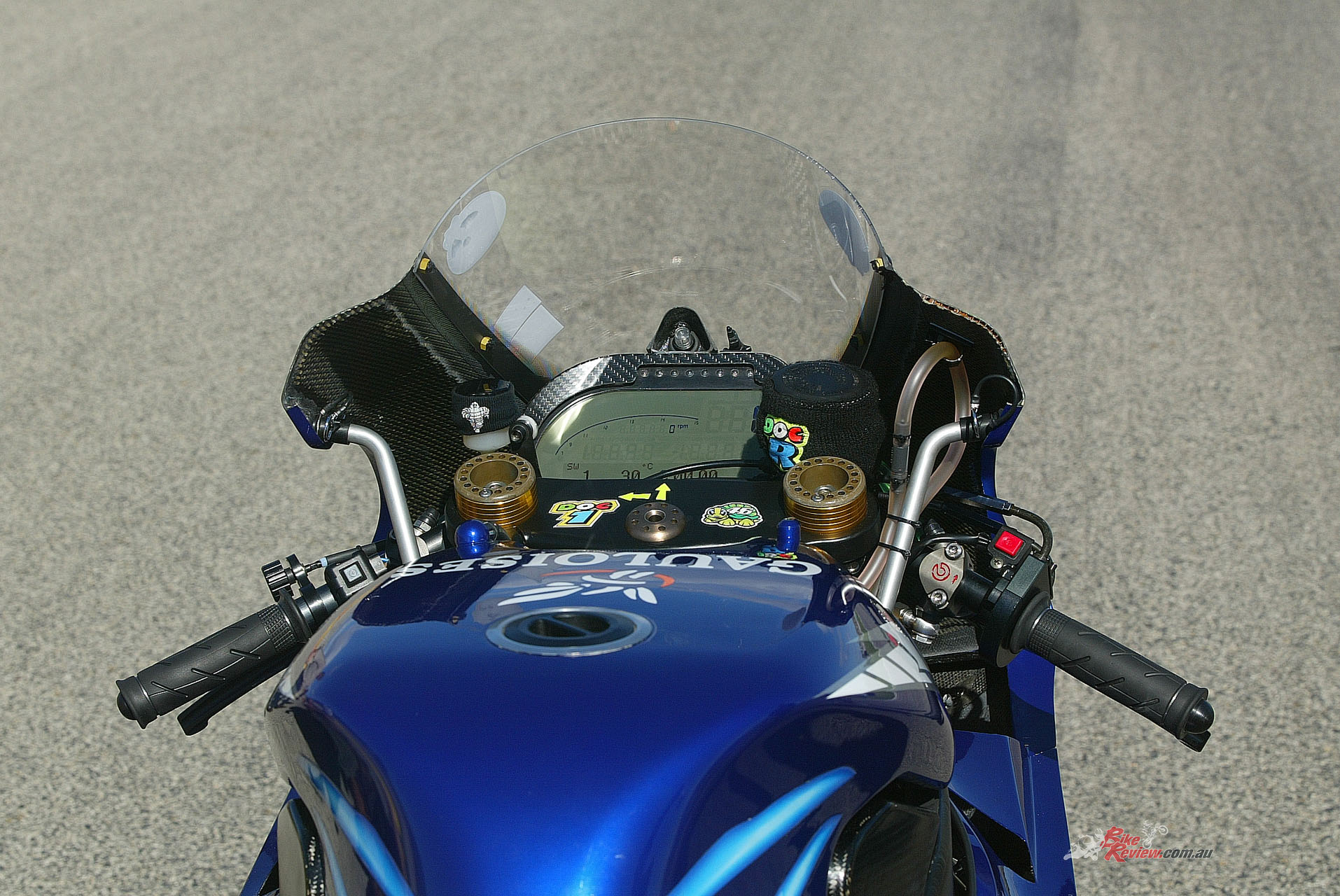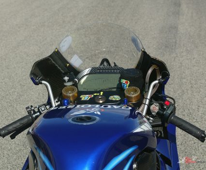 The six-speed gearbox was naturally an extractable cassette-type transmission, mated to a dry ramp-style slipper clutch whose conventional anti-lock function under reverse torque loads during engine braking was further supplemented by an electric motor which operated a so-called ‘kicker’ system introduced for 2003, properly known as an Idle Control System/ICS.