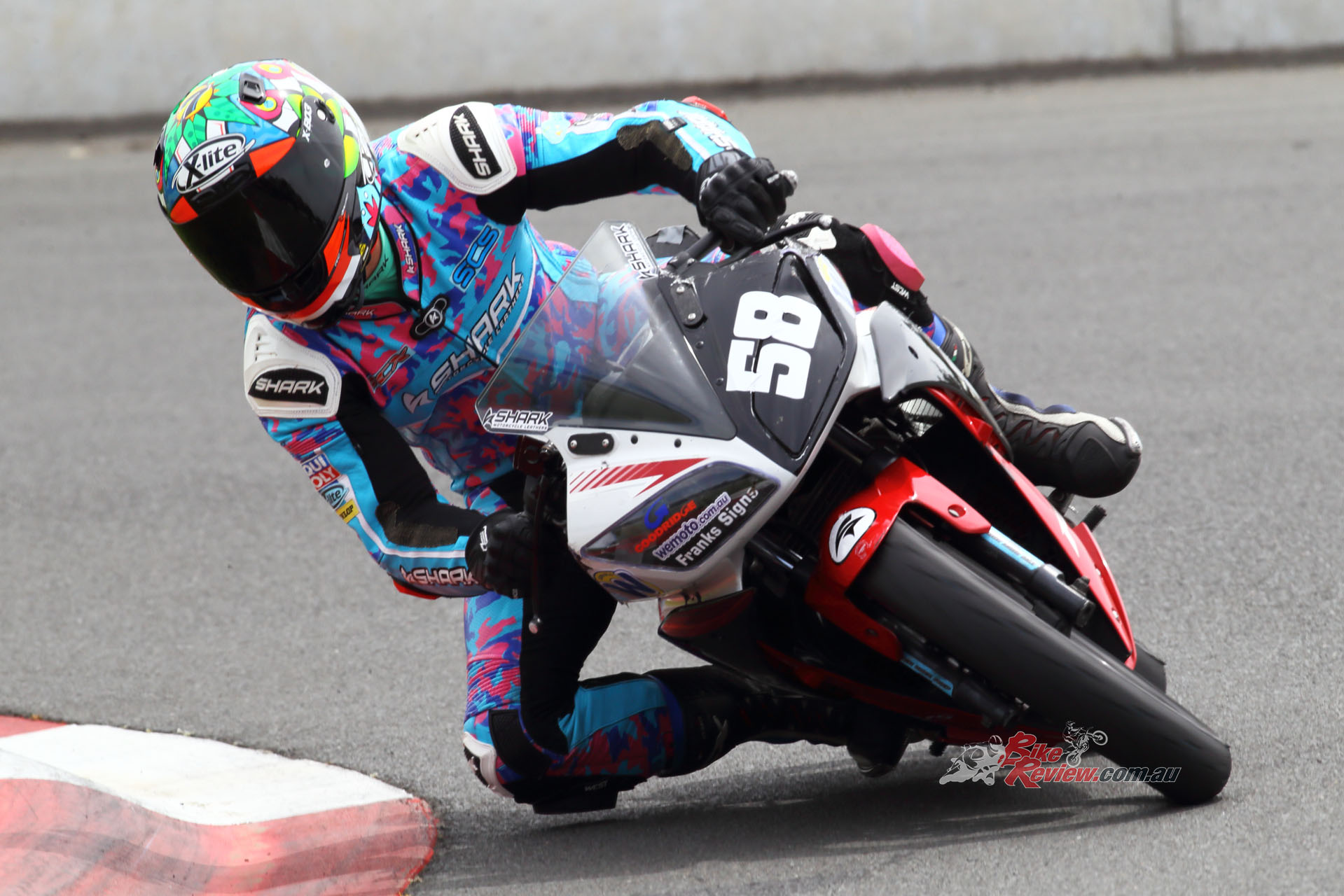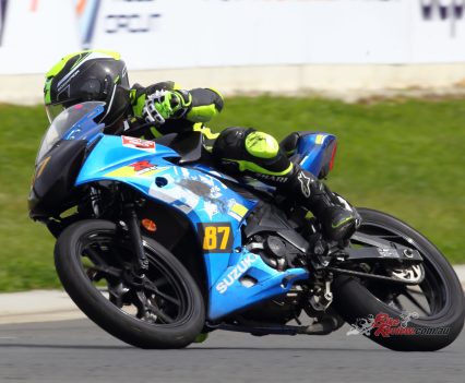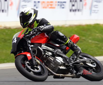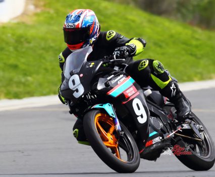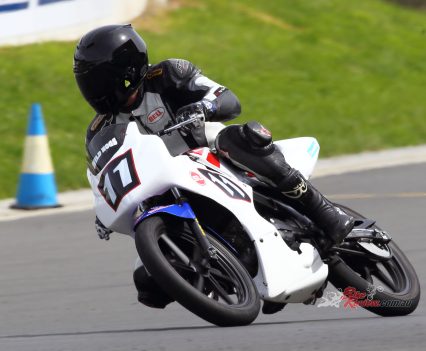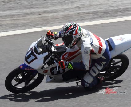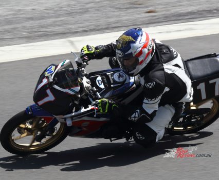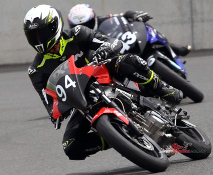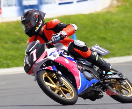 After Luca set a scorching time and qualifying second on the Saturday. Both Luca and Zane kept the bike upright for over 300 laps around the 1.4km tight and twisty track to bring the micro machine home for a podium finish. Battling with the other top two teams, the Shark Silkoline entry were just too quick to catch, with Keo Watson setting the 150cc Production record on lap 297!