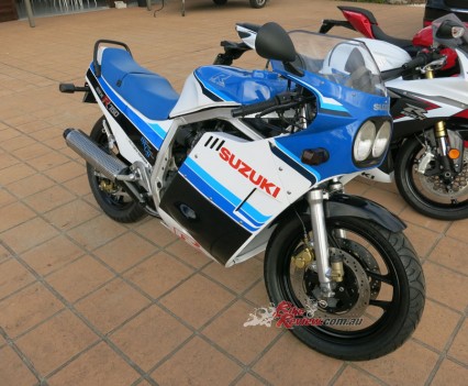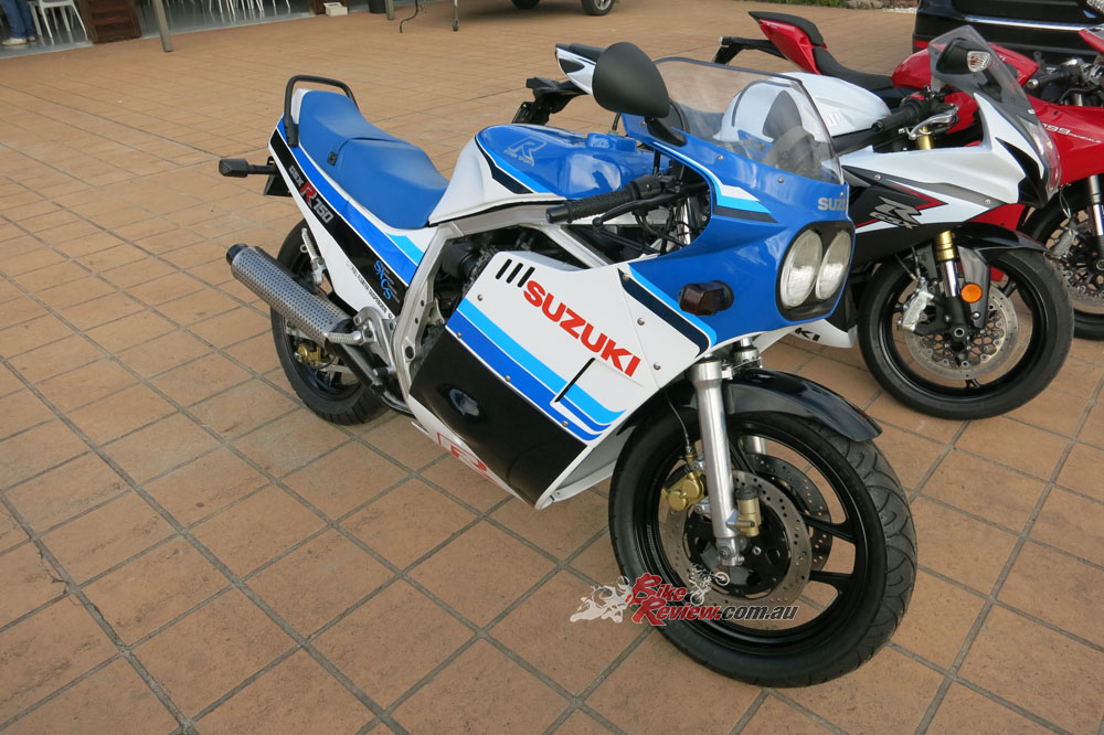 I’m still tinkering with bikes. I’ve got my 1985 GSX-R750F, which is my absolute pride and joy. I also have a 1995 CBR900RR Tiger Stripe I got last year for my 40th birthday off my wife Heather. Next to that is my 1985 RZ that Heather and I have had since we were young and I worked on as a motorcycle courier in Sydney.
