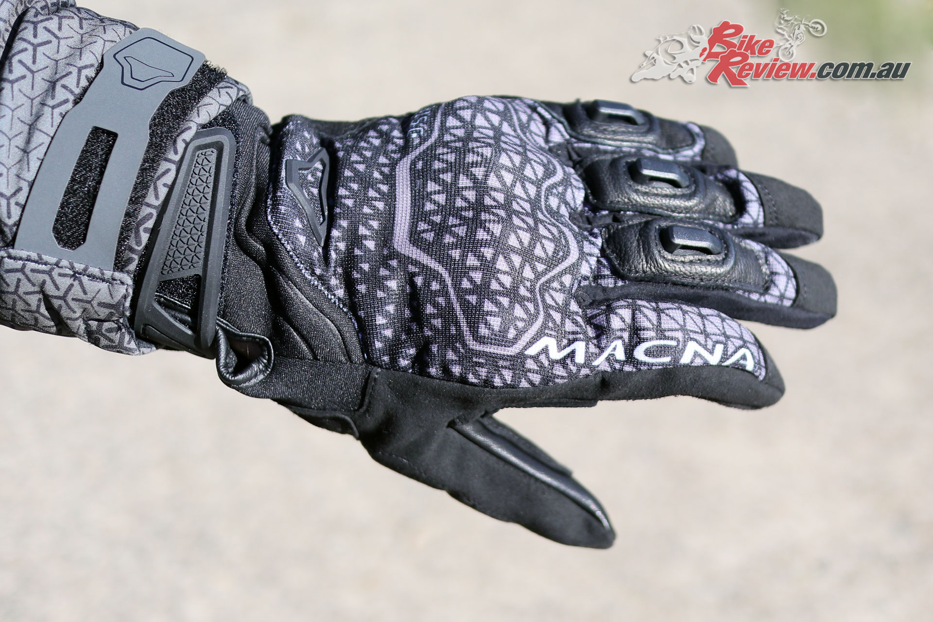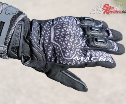 A Velcro wrist strap ensures a good fit, with room for adjustability, while I found the Large a bit too small, with the tiniest amount of pinching. In comparison the Fugitive winter gloves also from Macna had a bit of spare room at the ends of the fingers in the same side.