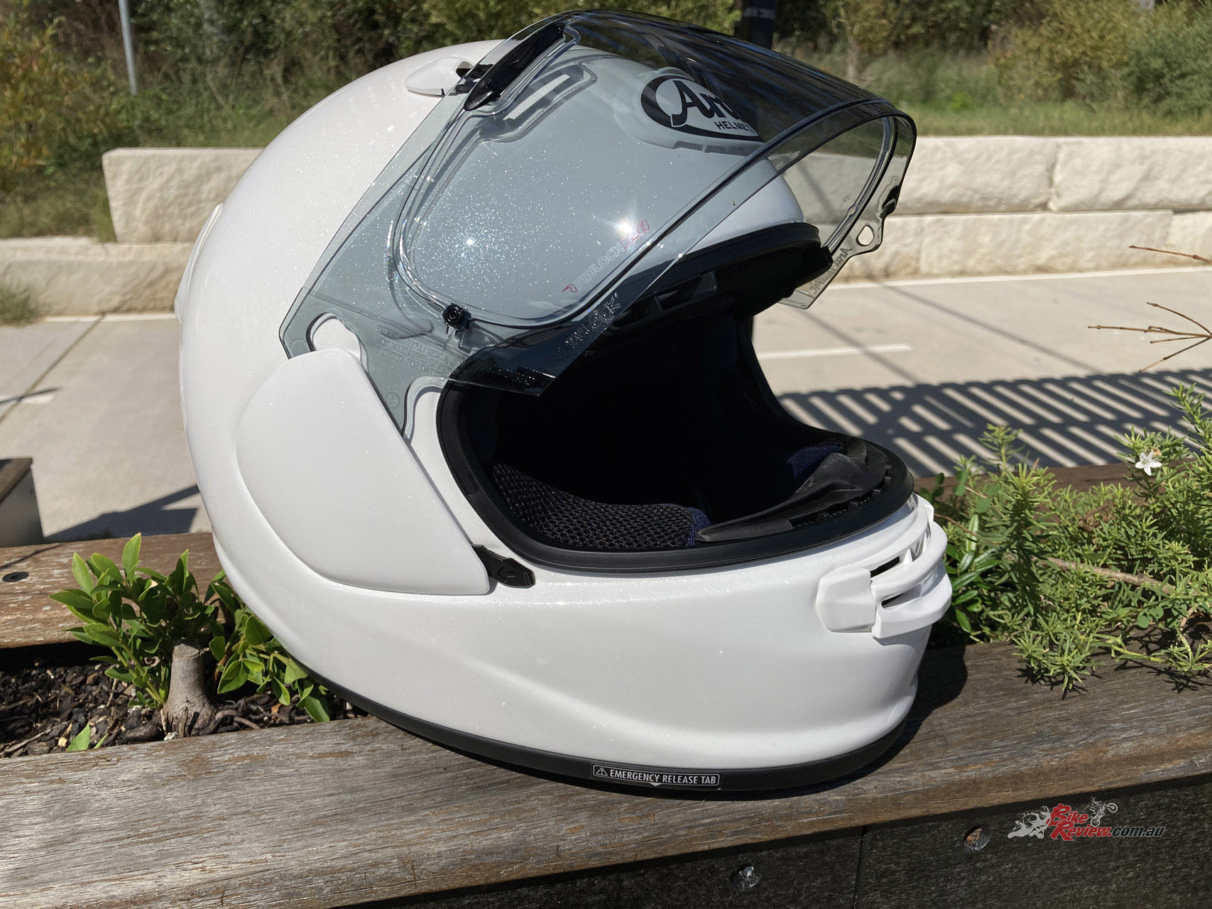 My Arai Quantic is a size M (57-58cm) and I received it with a light tint visor (VAS-V Shield Max Vision w/BV, Light-Smoke) and a Pinlock anti-fog insert. The retail price of my Diamond White Quantic is $999.95 and the Visor is $99.95. As we go live (April 3 2023), there is a sale on at MCAS where the Quantic is discounted to $845 and comes with a free Pro Shade – check it out here.