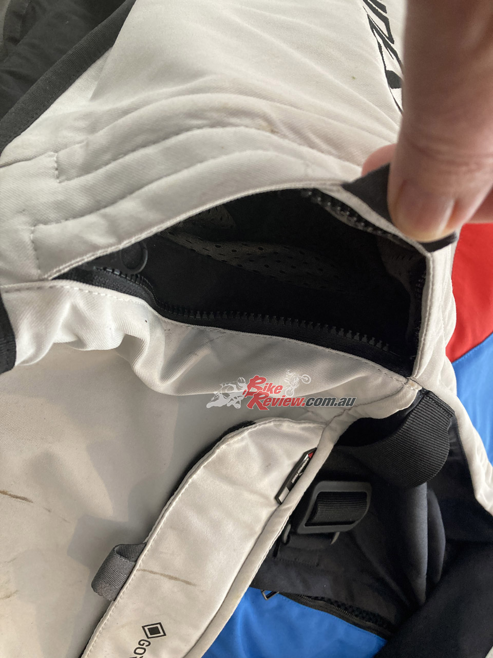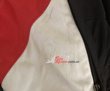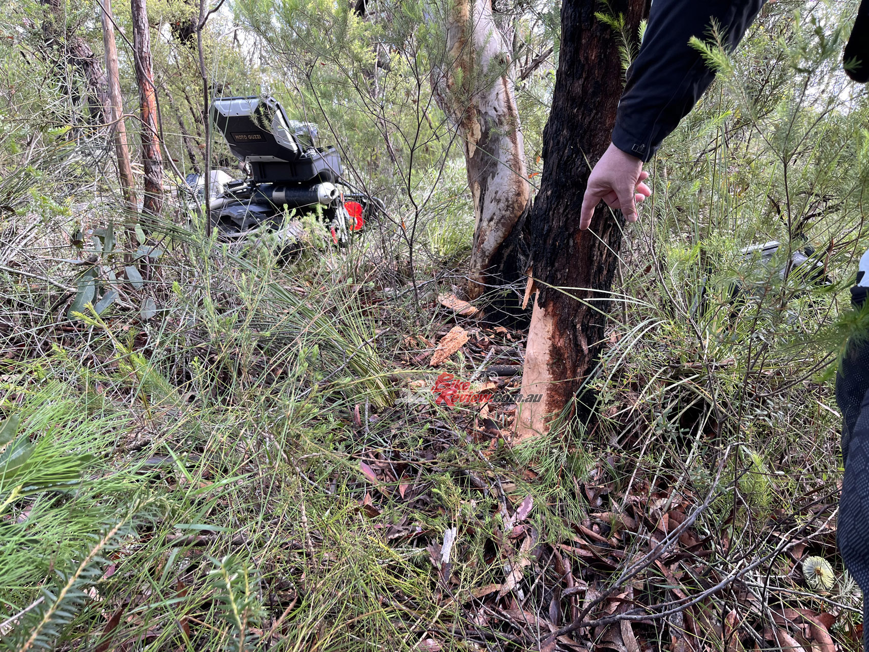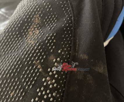 I walked away without as much as a scratch on my body thanks to the protection from the D-Explorer 2. There are plenty of marks on the fabric to tell the story, but none on me. It saved my elbows, knees, shins and my back and I am very, very grateful I was wearing it all. My shins hit the Guzzi cylinders hard, my elbows hit numerous gum trees, and when I went down, the bike landed on my back. The CE armour throughout absorbed all of those impacts, thankfully.