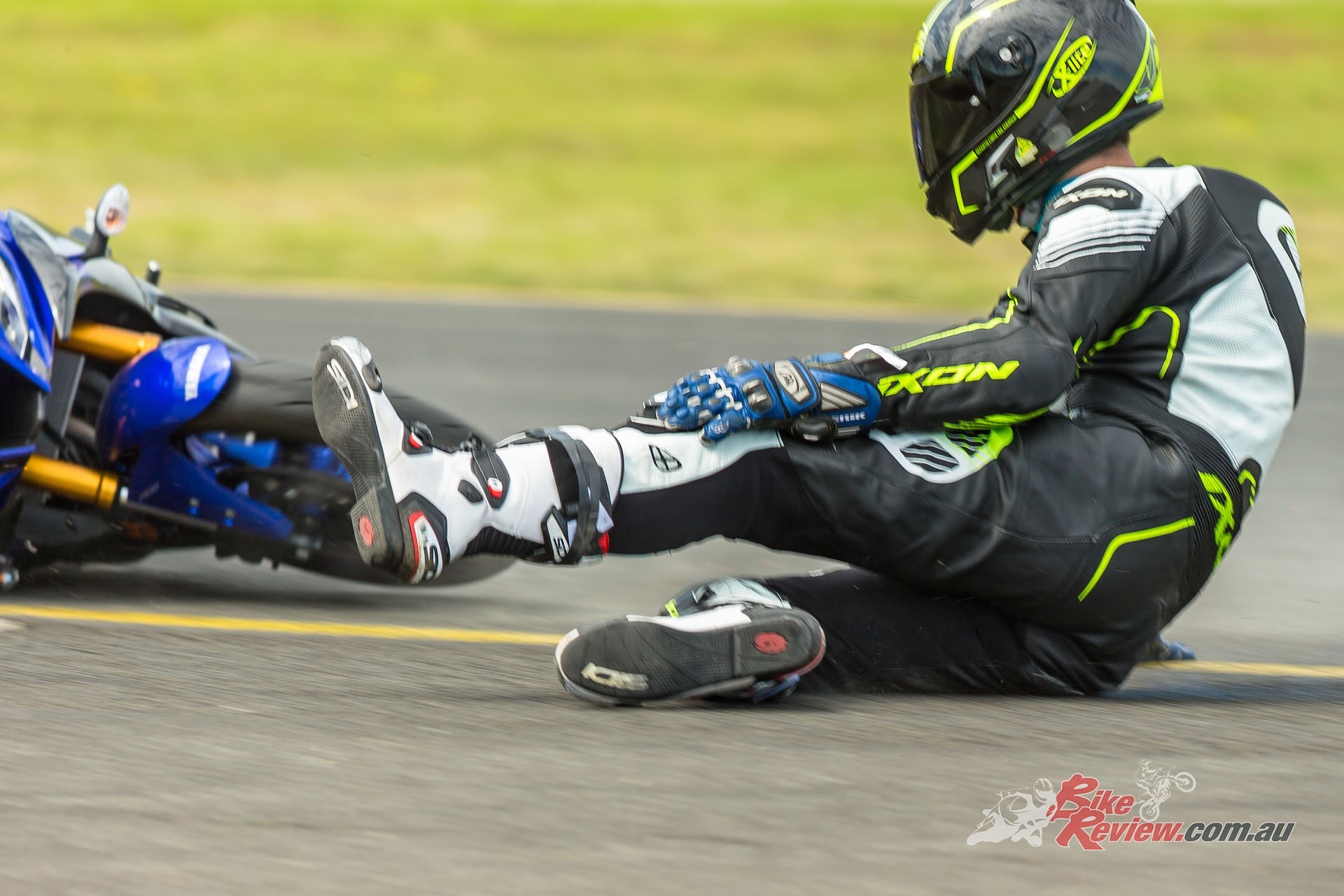 The last thing to mention about the suit itself are the shoulder and elbow sliders. Most previous generations of IXON leathers do have inbuilt impact protection in these areas but the leather still causes resistance while you’re sliding along the road. Having these sliders here reduces the stress put on the leather and allows you to have a controlled slide along the ground, keeping in mind that when you start to flail around when you come off is when you start to break bones. It’s my goal to use the elbow sliders (without coming off the bike) this year.
