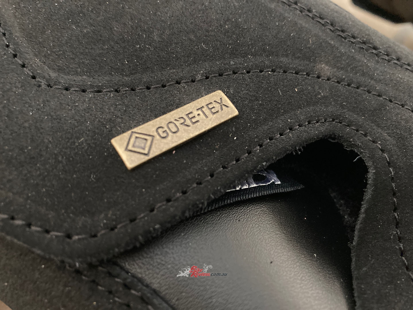 The GORE-TEX feature full grain microfiber, a type of synthetic composite leather. It looks nice and holds up surprisingly well! The full grain microfibre make up most of the upper boot, which leads into the hardier leather toe-shift pads, followed by the gnarly and aggressive bonded non-slip soles, which offer a tonne of grip in the slippery stuff and rubberised foot pegs! Also, given how thick the soles are, they do a great job at dampening the vibrations you get on some of the bumpier surfaces.